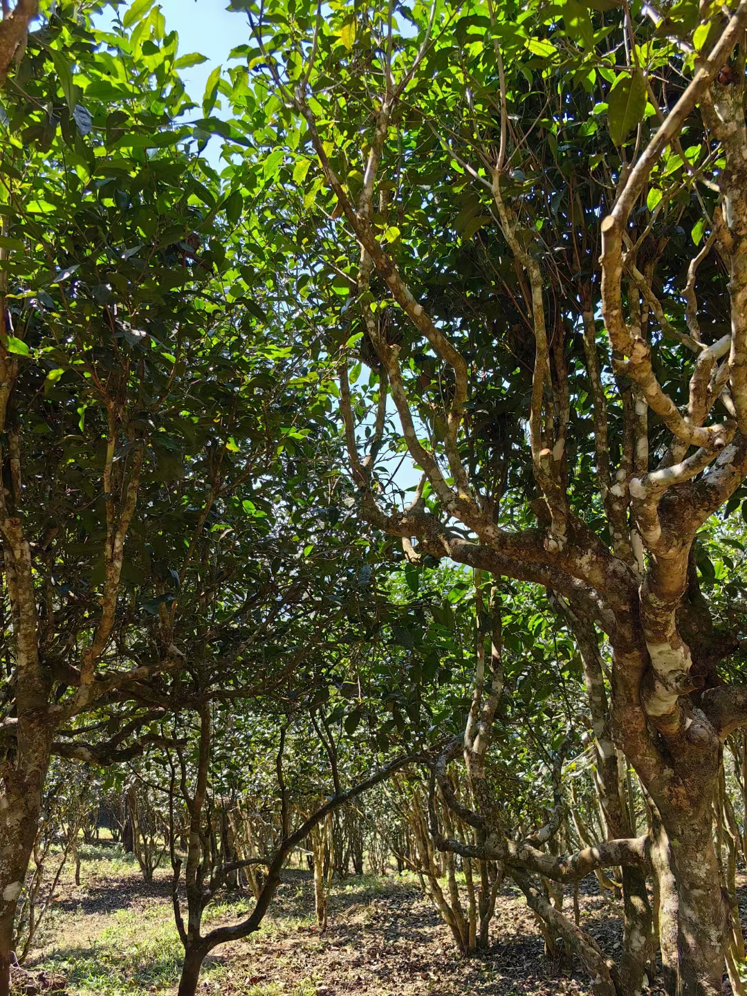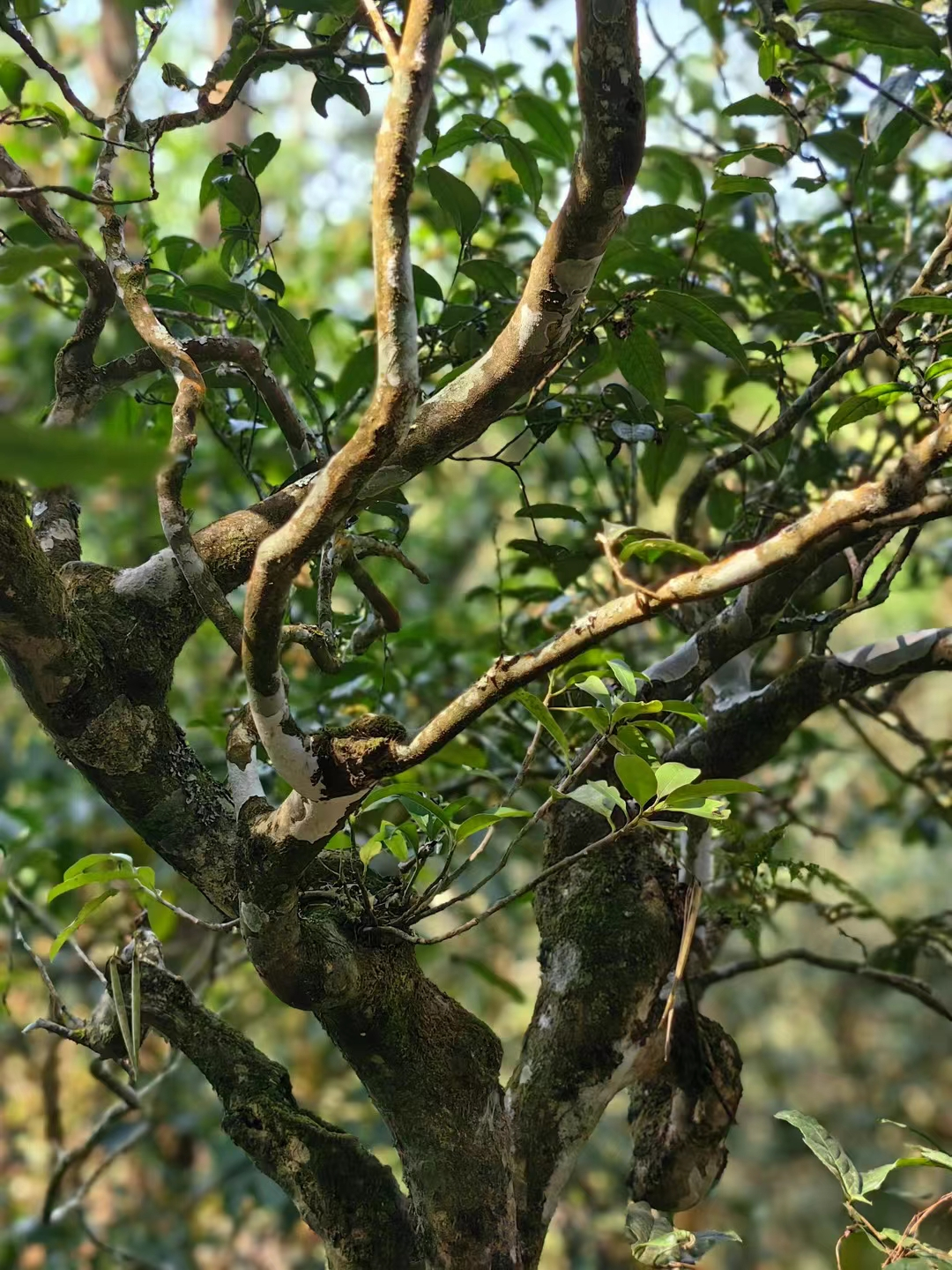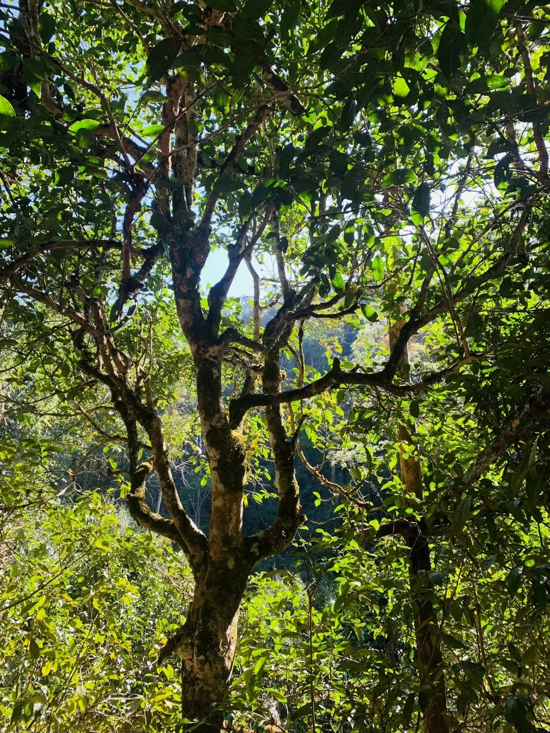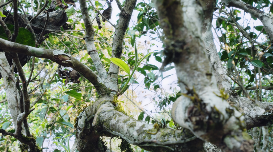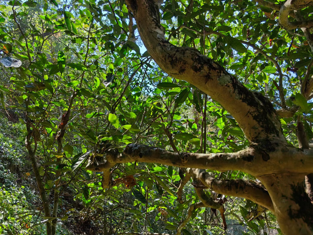 选定古茶树长势旺盛,枝干粗壮多分支,冠幅繁茂,颇具布朗雄风。班盆老寨大龄古茶、高奢单株即将上市,预定尊享。