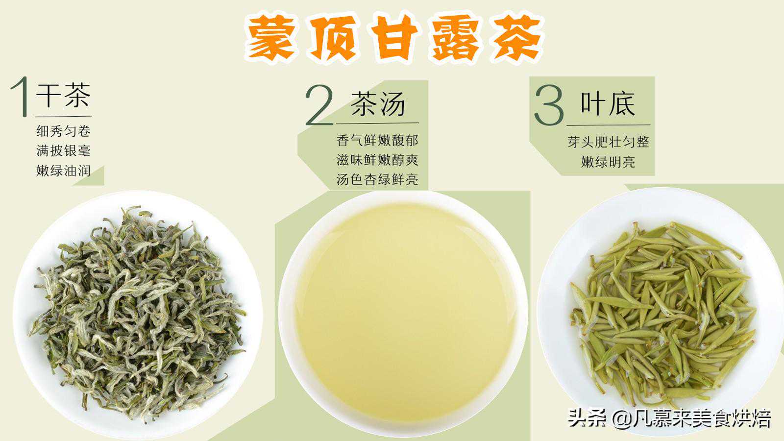 扬子江中水,蒙山顶上茶。蒙顶茶产于地跨四川省名山、雅安两地的蒙山,四川蒙顶山上清峰汉代甘露祖师吴理真手植七株仙茶的遗址。蒙顶甘露是中国最古老的名茶,被尊为茶中故旧,名茶先驱。