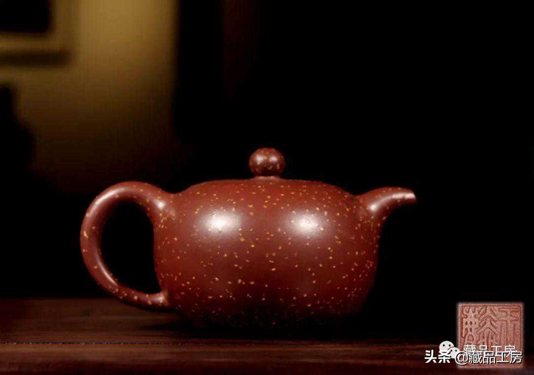 壶表铺面金黄色桂花砂,全器曲线柔和流畅,造型浑厚朴拙,有端庄敦穆的韵致。