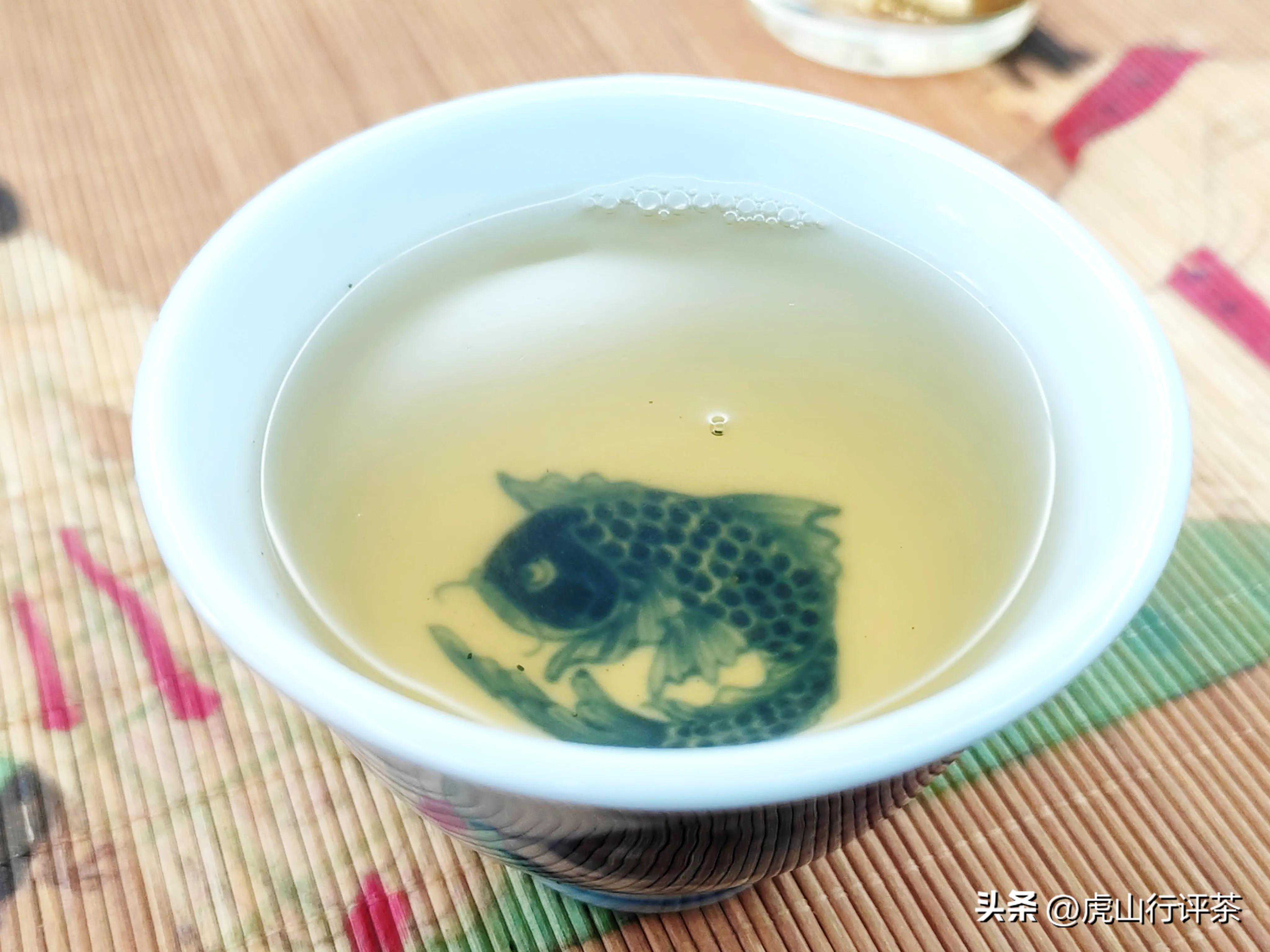 尾水滋味浓度明显弱化,饱和度向下较多,生津喉韵维持、清凉感依旧明显,水意稍显,汤质变松散,八泡见水,结束。