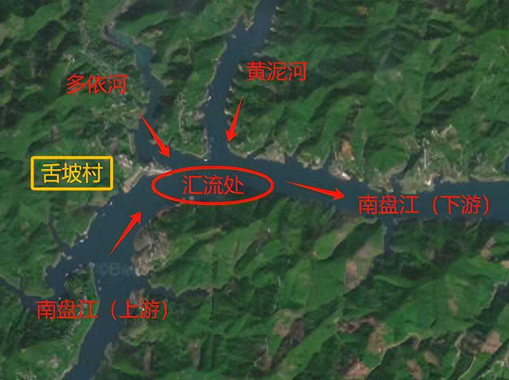 上图为:舌坡村三江汇流实景图