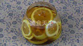 6.放完柠檬后,裸露出来的柠檬容易变质,这时候要多倒入点蜂蜜进去,将柠檬覆盖