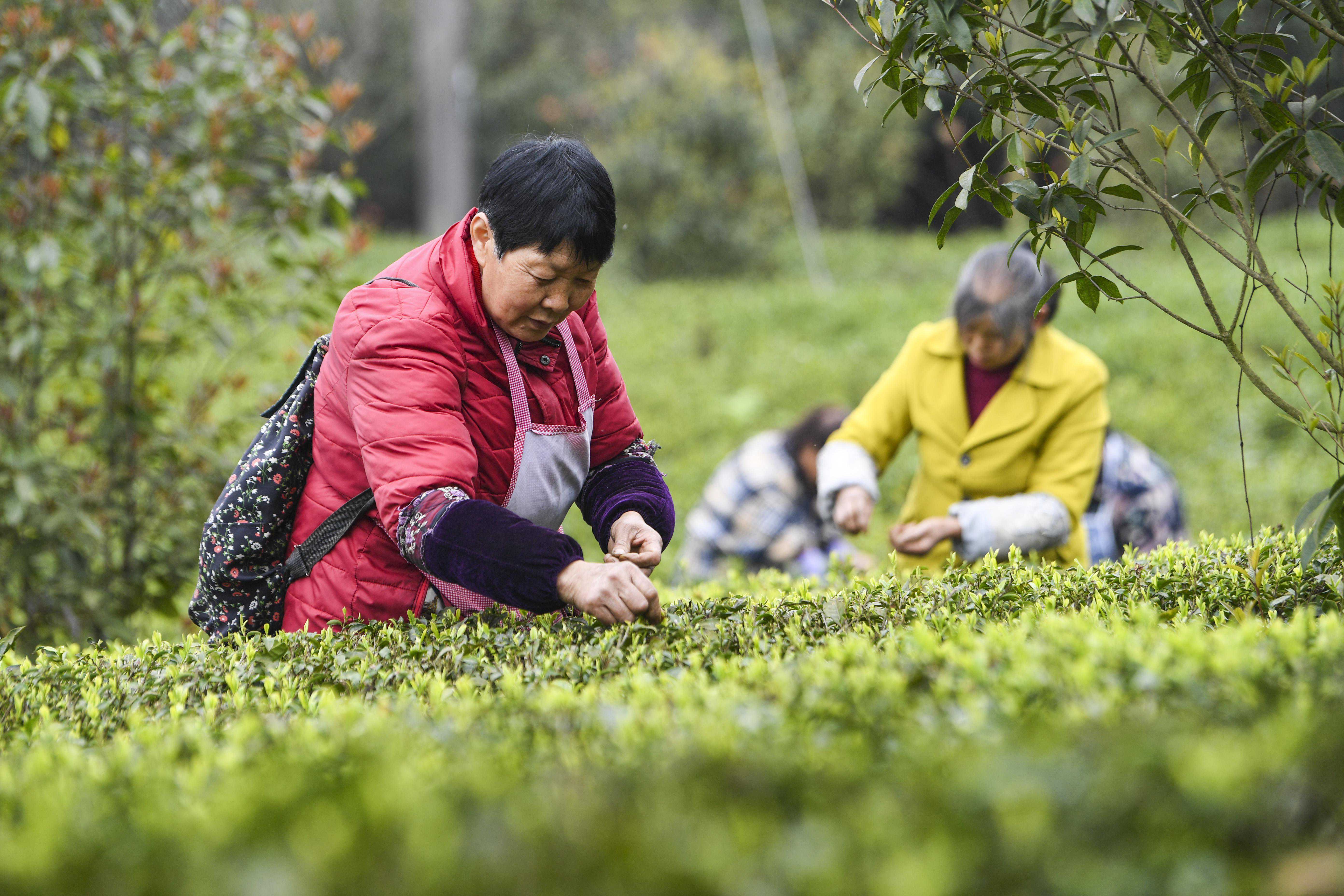 3月19日,茶农在重庆市永川区大安街道花果山村茶园采摘春茶。新华社记者王全超摄