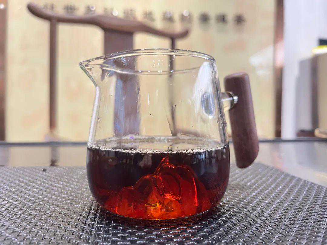 冲泡时称取适量熟茶,再搭配少许甜竹叶,汤中糖甜香和草木清香交融,喝起来清甜爽滑,阵阵凉感掠过舌面和喉咙,甜而不腻,齿颊甘润生香。