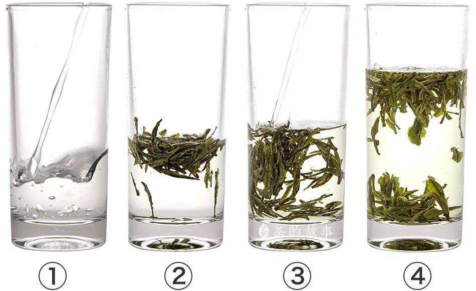 操作:先将开水注入杯中约1/3处,待水温凉至90左右时,将茶叶投入杯中,稍稍转动玻璃杯让茶叶浸润,再将约80-90的开水徐徐加入杯的七分满处,稍后即可品茶。