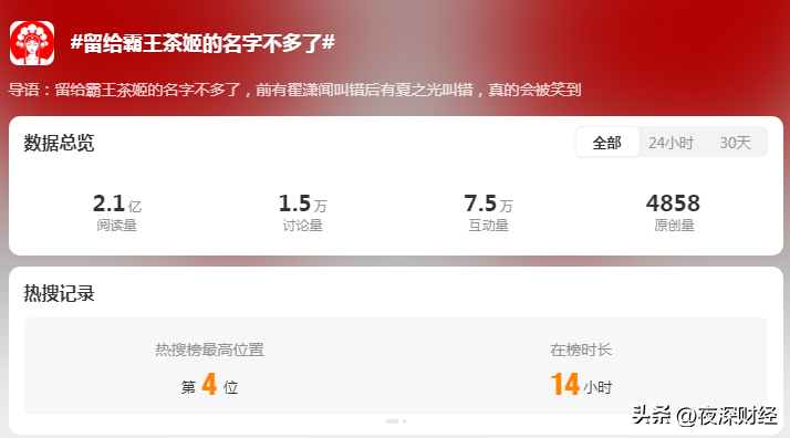 01很快,话题就上了微博热搜榜一的位置。拿着茶姬的代言费,反倒给竞对茶颜打了一波广告,霸王茶姬品宣部已哭晕在厕所。