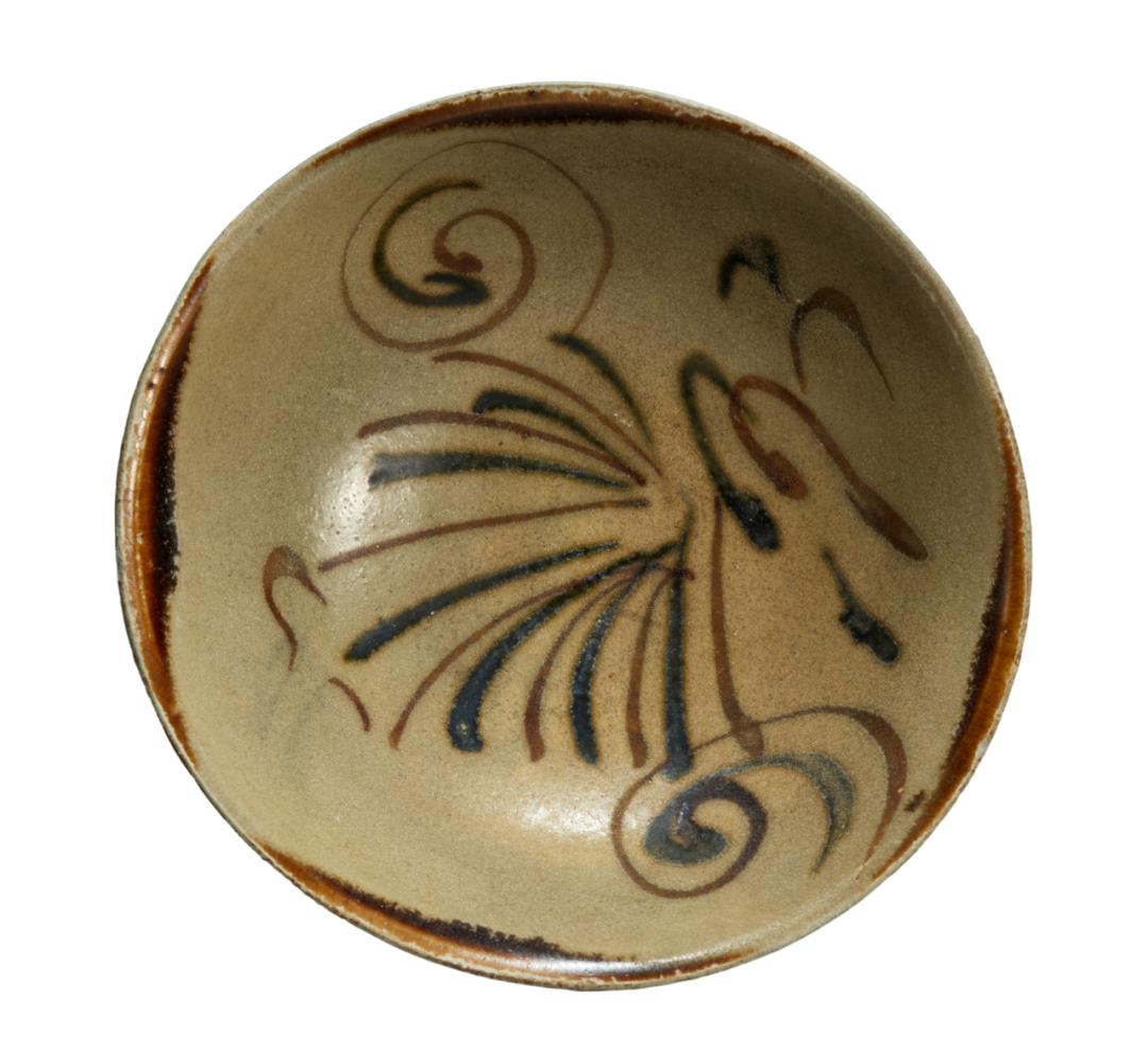 唐长沙窑青釉褐彩云气纹瓷碗口径15.2cm底径5.4cm高5.2cm
