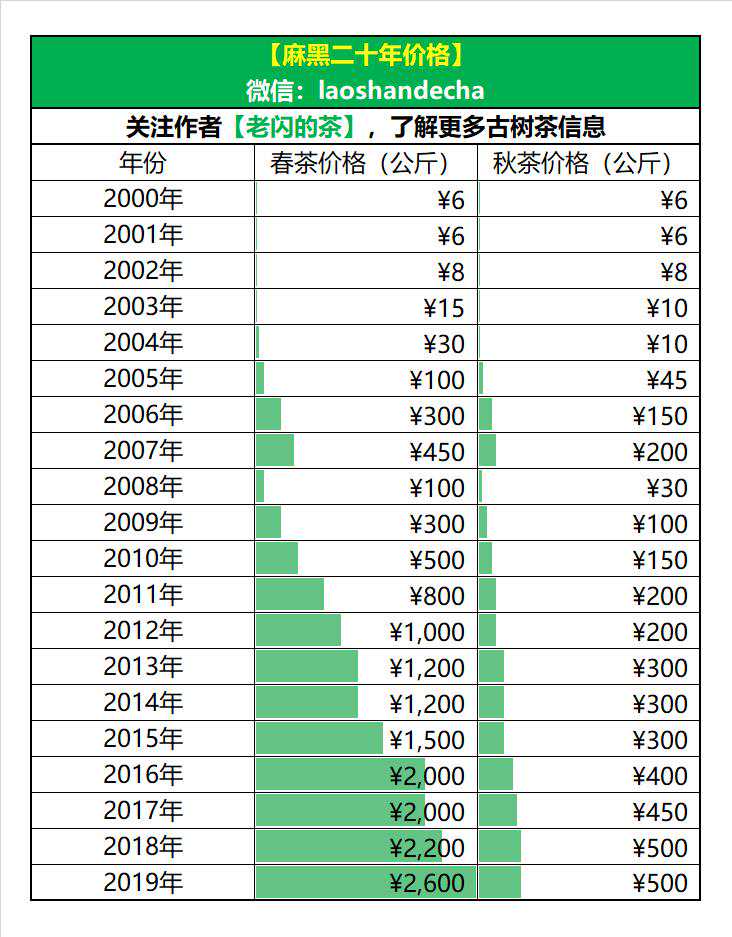 【附上麻黑二十年前的价格变化】