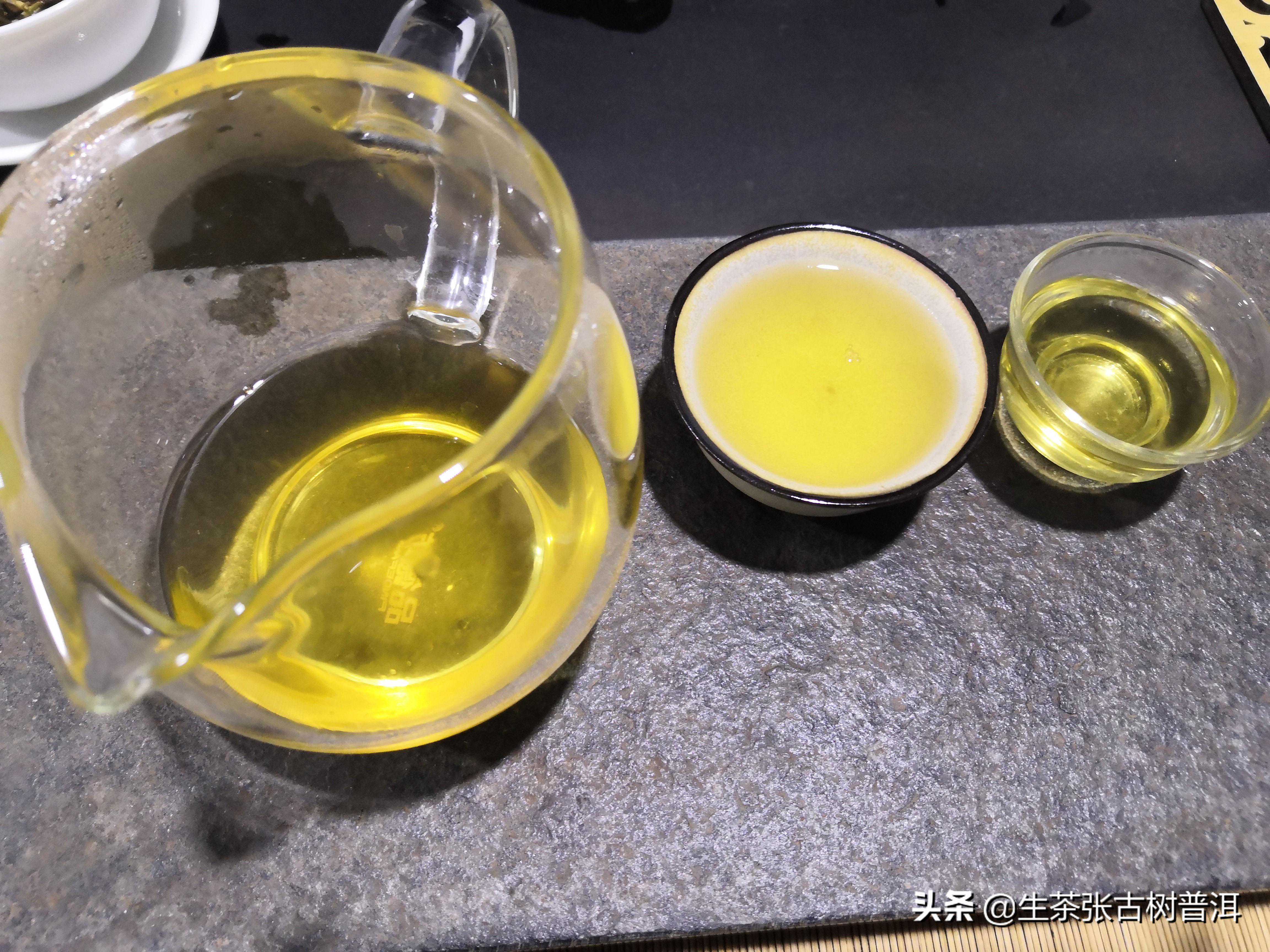 保塘古树茶芽头肥大,显毫,汤色金黄透亮,汤色金黄明亮,山野气强,早春香气极好,杯底留香强且持久。