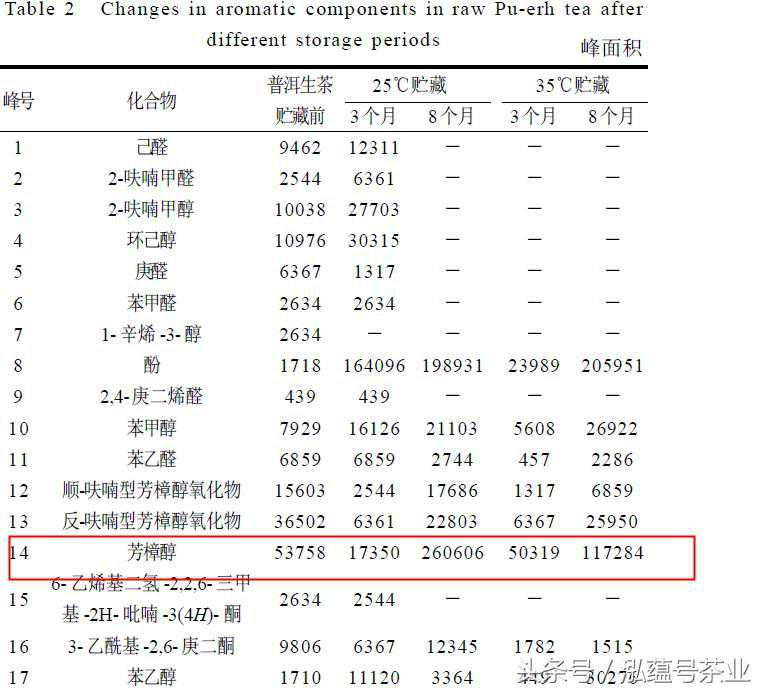 上图是普洱生茶中的芳樟醇含量,根据实验室的结果,芳樟醇的含量是随着普洱生茶存储的过程而提高的。