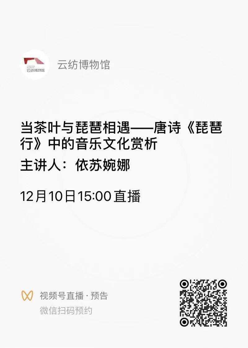 12月10日即将开讲的“唐诗《琵琶行》中的音乐文化赏析”公益讲座让茶与音乐相遇,共同奏出一曲沁人心脾的芳香乐章。