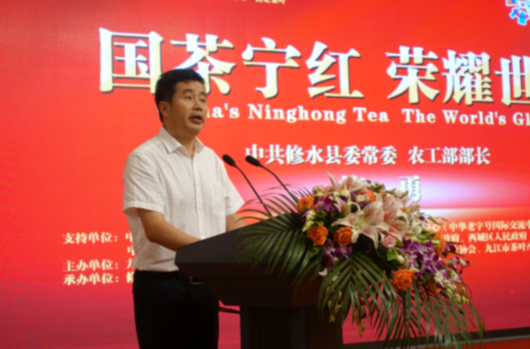 中共九江市修水县委常委、农工部部长梅勇、中共九江市委常委副市长蹇侠、北京市西城区副区长徐利在会上发表讲话。他们指出江西是茶叶之乡,茶历史源远流长,茶文化底蕴深厚,九江的庐山云雾茶、宁红茶都曾在历史上颇负盛名。近十年来,在江西省委、省政府和九江市委、市政府的正确领导下,修水的茶叶产业得到了较快的发展,特别是宁红茶,在国内国际上,都得到了大家的认可和赞誉。