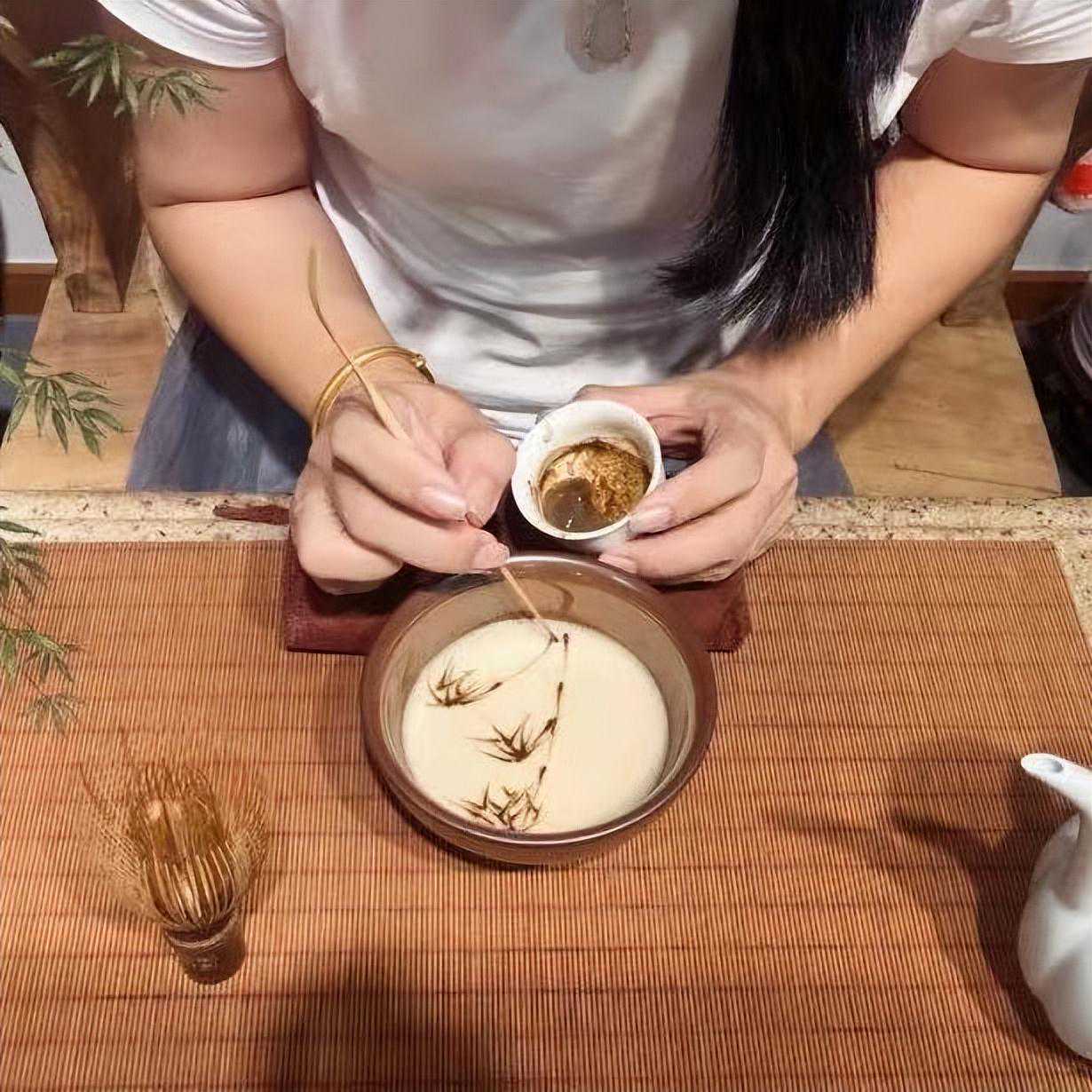 有些人可能会感到疑惑,喝茶太常见了,为何从来没见过在茶杯中“画画”的呢?实际上,古人饮茶方式和现代人的差别很大,古人喝茶时大都将茶叶捣碎,这样一来,虽然喝茶时会有很多“茶沫子”,看似影响饮用,但在古代它们有另外一个名字——茶泡,而且它们还被古人视为珍宝,古人冲茶时,首先将茶渣放在茶杯中后,然后利用特殊的角度,向茶杯中注入沸水,这样茶杯中会出现大量茶泡,茶泡可以利用倒进的沸水形成图案,这个过程就是分茶。