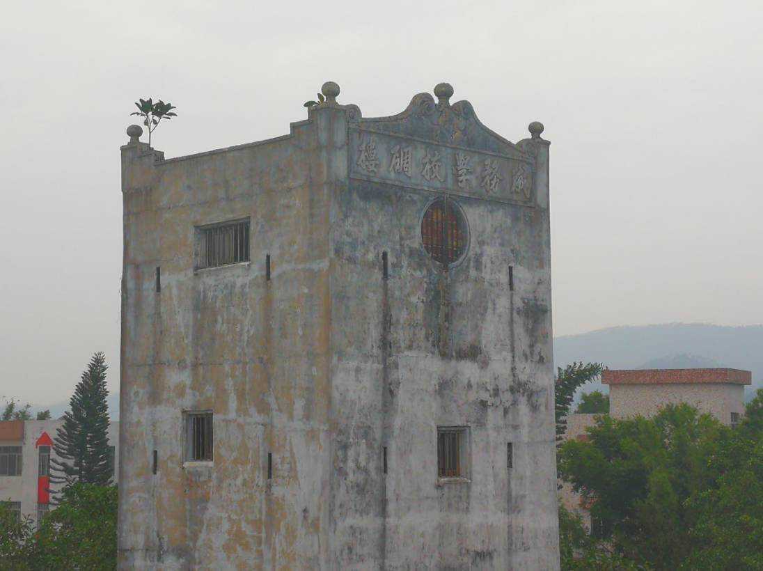 乡贤伍礼门倡议建成务学校,侨领伍于秩走遍欧美各国,筹集10多万白银,于1906年动工,1908年竣工及招生入学。1909年2月24日为开学庆典之日,由清政府台山县正堂长官覃寿坤主礼命名为“成务高等小学校”,建筑面积872平方米。1924年为防盗贼绑架学生而建碉楼请保安,保护师生安全。这也是中国唯一学校有碉楼的存在。1931年,伍族人在校侧建宏伟的柱国伍公祠,面积500余平方米,设天桥与学校联接,设计适合学校使用,声明“用裨兴学”。
