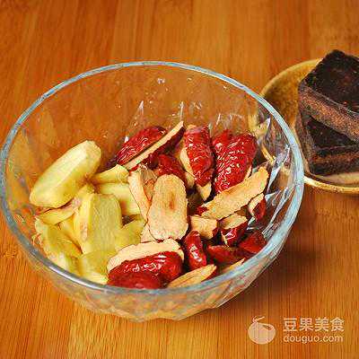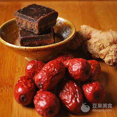 1、准备好所有的食材——红枣、姜、红糖块备用。