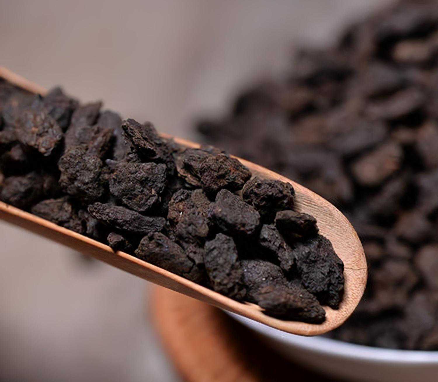 简单点来说,碎银子是小颗粒的老茶头。1)不过老茶头是红褐色,碎银子颜色更深,带点黑色;2)碎银子也不像老茶头一样自然产生,而是选用优质古树老茶头再经过切割工艺,反复筛选后精制而成;3)碎银子发酵时间比老茶头长,同样分量的碎银子,含有更多的果胶,沉淀了更多的老茶头精华,泡出来红彤彤的,甜度更高,更耐泡。