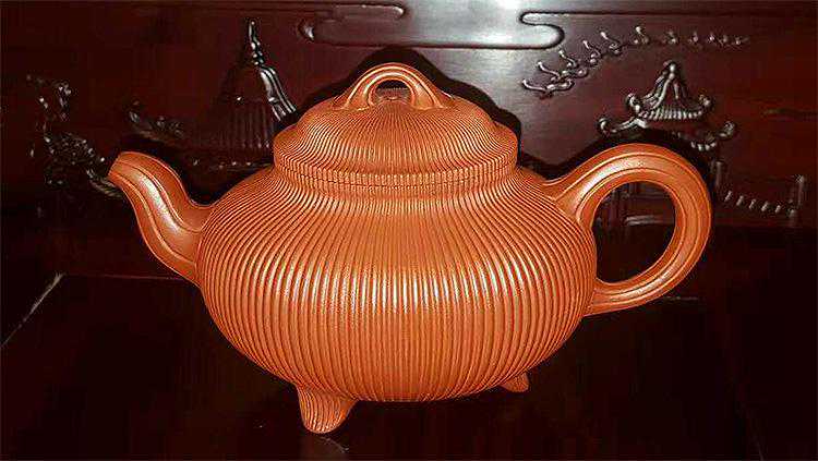 筋囊壶手工制作的最大难点就是对整体造型艺术的精准把握。每一个细节的塑造臻于完美,浑然天成。筋囊器发展到今天已成为紫砂匠人们最爱的器型之一,筋纹器在创新方面也都有各自独特的特点,这些作品既不失传统又具有现代的活力,且紫砂壶造型和装饰的艺术之美、形式之多,题材之广泛,是当今任何陶器所无法比拟的。