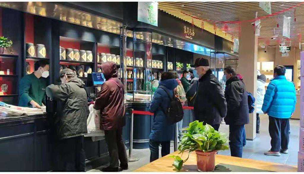 62岁的高大爷在散茶档口买了3两茉莉云针花茶和2两红茶。“都说冬天喝点儿红茶好,我买回去尝尝。”店员麻利地称重、打包、塑封、收钱,整个过程只用了一分多钟。“这可比之前快了不少。”高大爷开心地说。