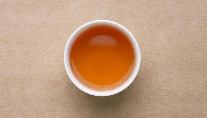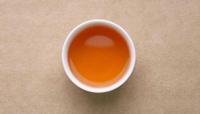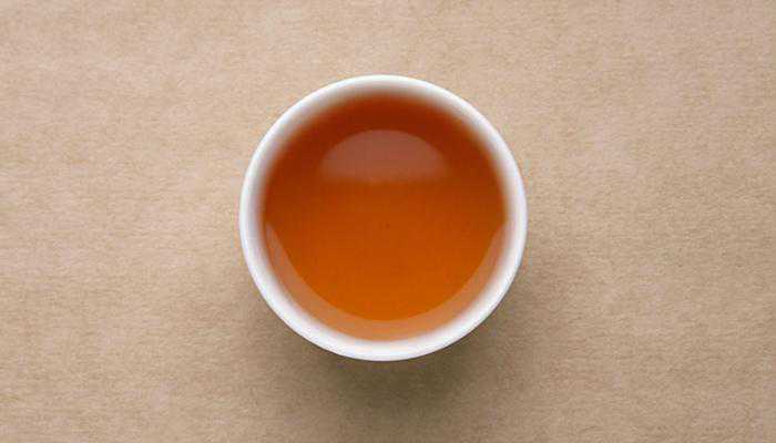 汤色橙红明亮,粽叶香、海藻类植物香混合,香气和滋味稳定,茶汤甜柔,微有涩感,回甘较显,有生津。饮后口腔有清凉感。
