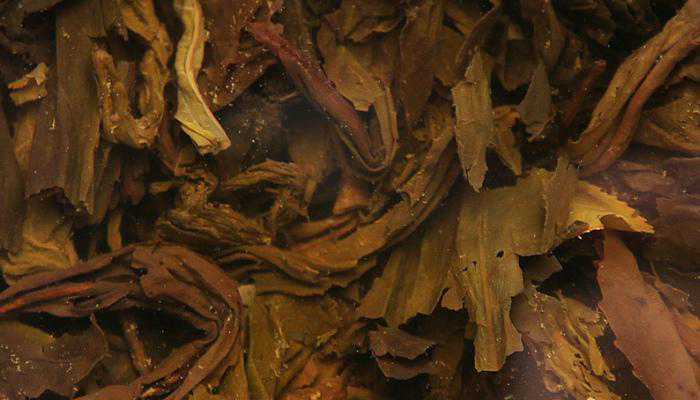 茶叶呈青褐色,色泽较匀,叶片厚实,少量茶叶弹性欠佳,叶底茶叶带有清淡的粽叶香。