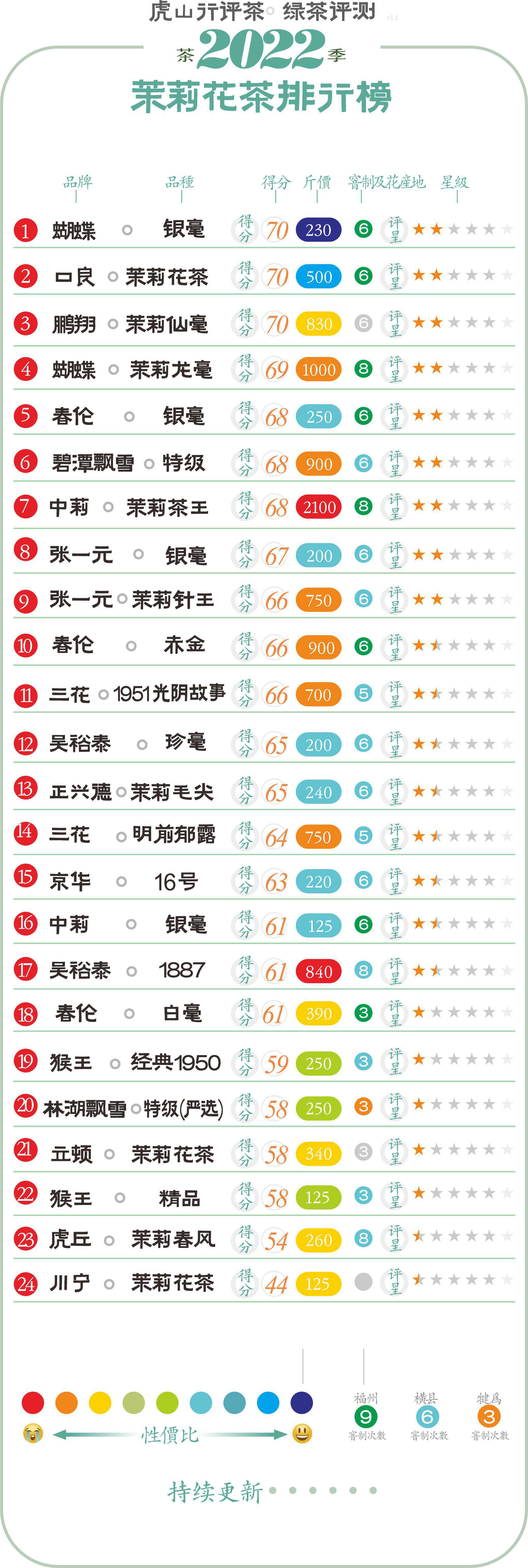 综合评价这款中高端福州茉莉花茶总体表现一般,在香气浓度上没有达到八窨预期,同样是闻着挺香,喝起来打了折扣,香气入水较少,好在香气还是有一定仙灵感的,香气清雅。