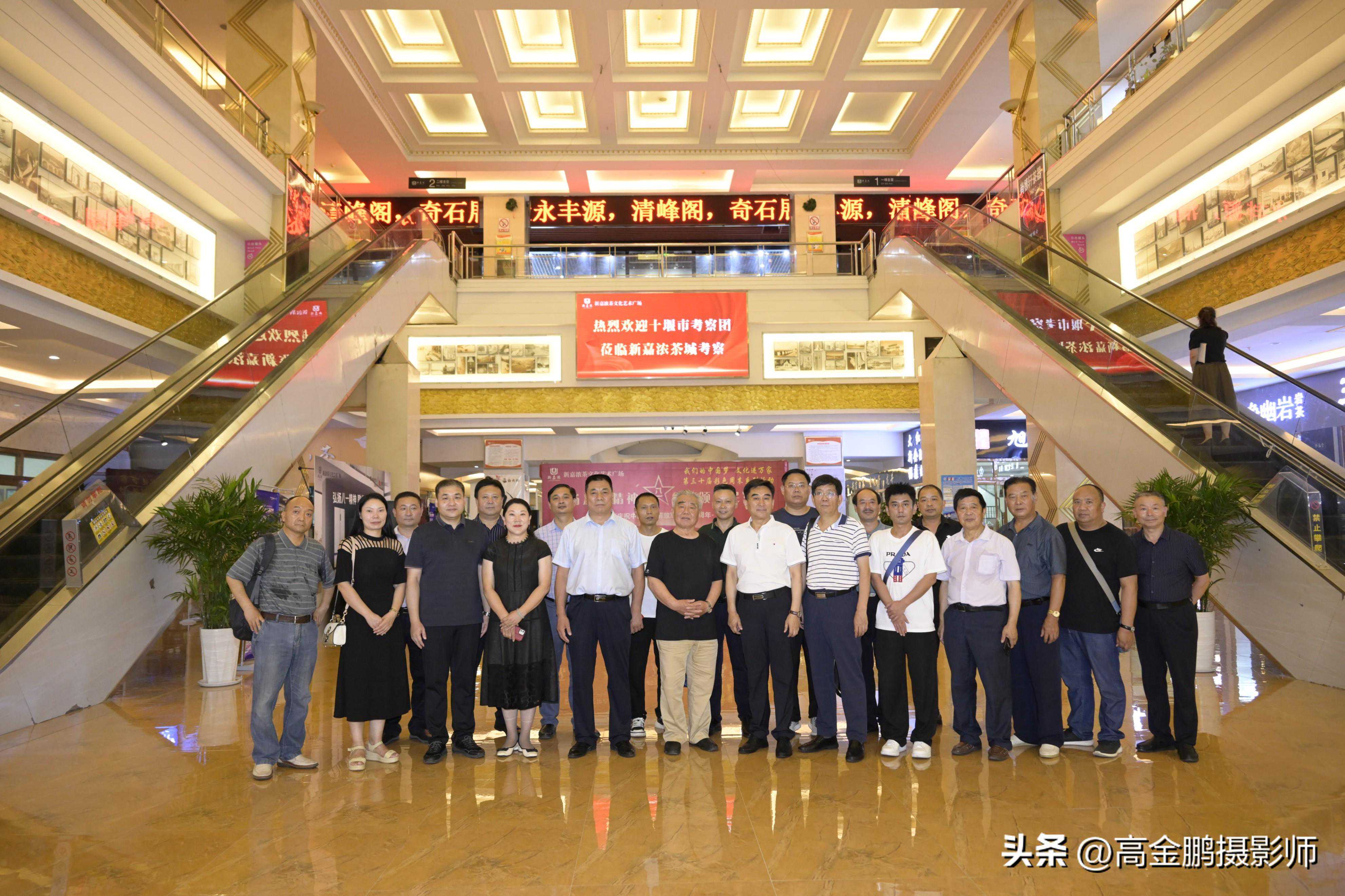 会长梁记朝、副会长兼秘书长王志、副会长刘淑敏、安首虎等协会领导陪同十堰市武当山茶产业品牌联盟主席、十堰市茶叶品牌运营管理有限公司董事长王大明;十堰市农业农村局果茶专班负责人张岚;武当山茶联盟副秘书长高兵等十堰市有关部门、协会和代表性企业负责人考察新嘉浓茶城。