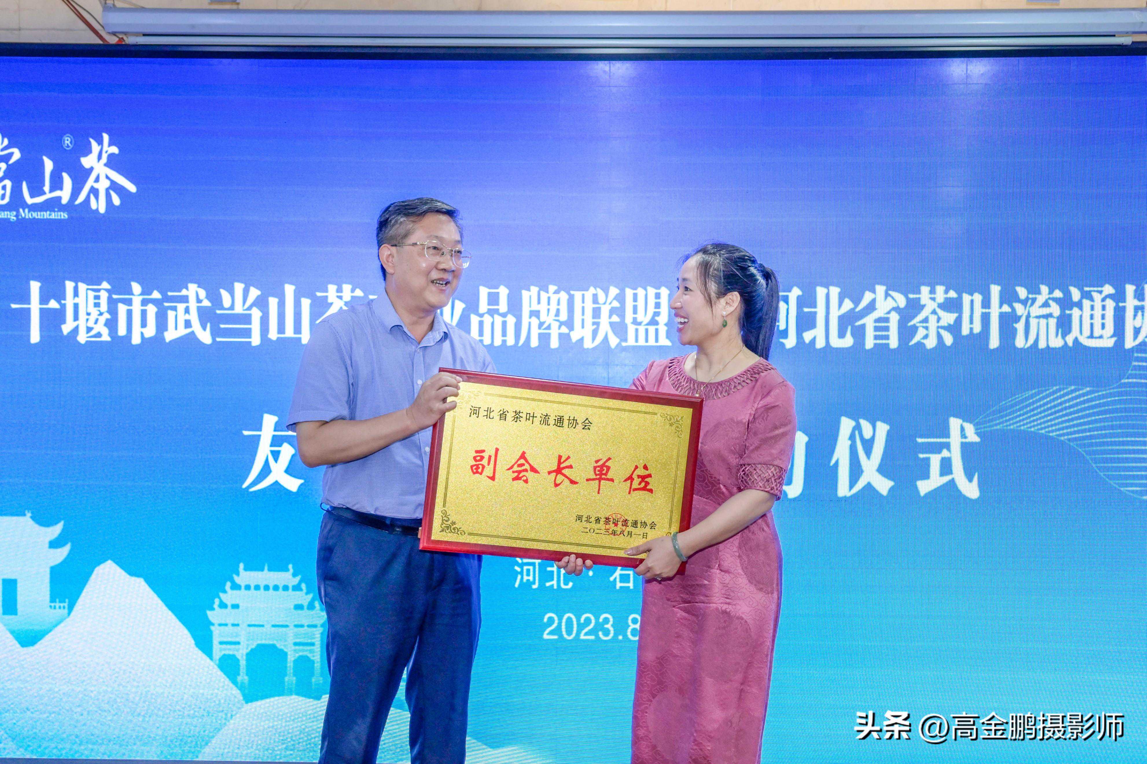 十堰市人大常委会副主任、市茶产业链副链长曹明权为增补的河北省茶叶流通协会副会长杨惠平授牌。