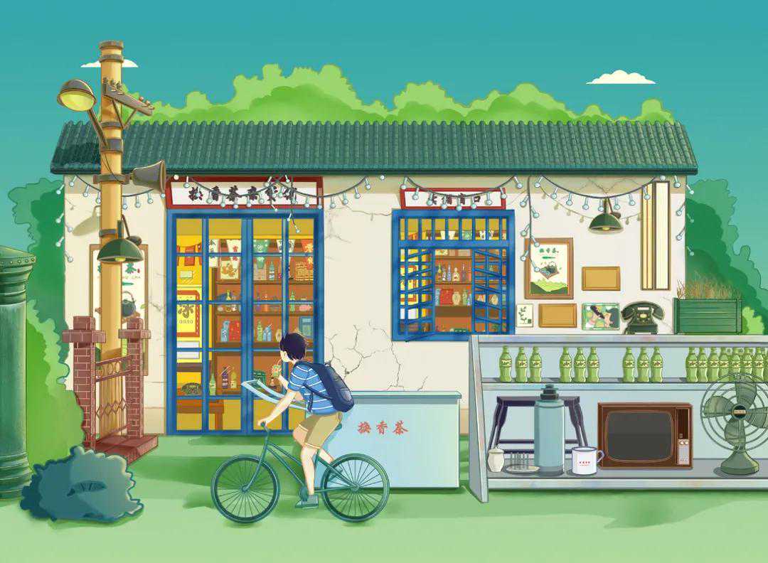 因而插画场景定位到街道的小商铺