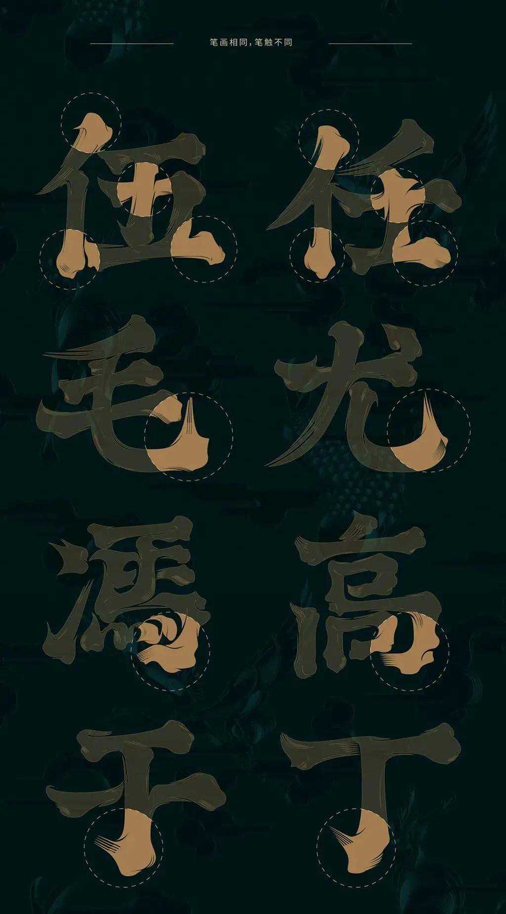 搭配毛笔书写中“筋骨血脉”的书写方式