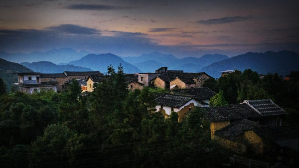 顺山路而下,尧阳村的日寨映入眼帘,古时日寨厝厝相连,排成一个‘日’字,居住在此的人多为大茶商,有“挑出一担茶叶,挑回一担白银”的传说,如今却没什么人居住了,黄白古厝静谧地站在那里,守护着山脚。