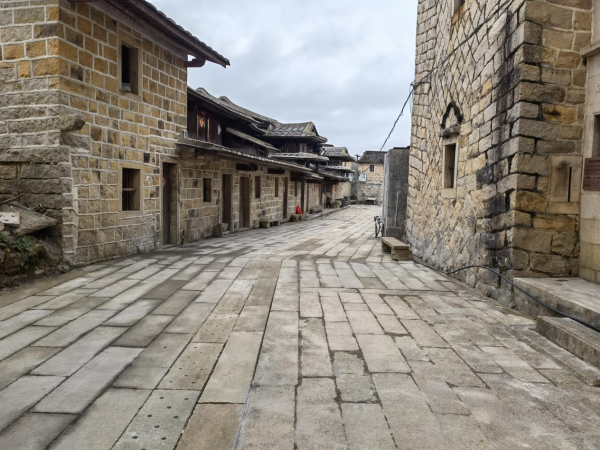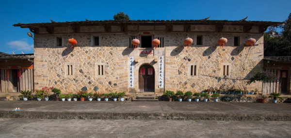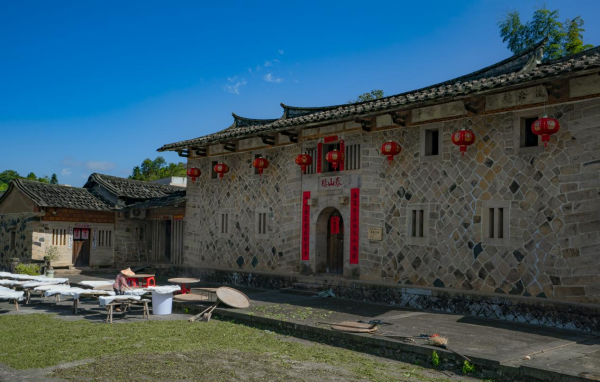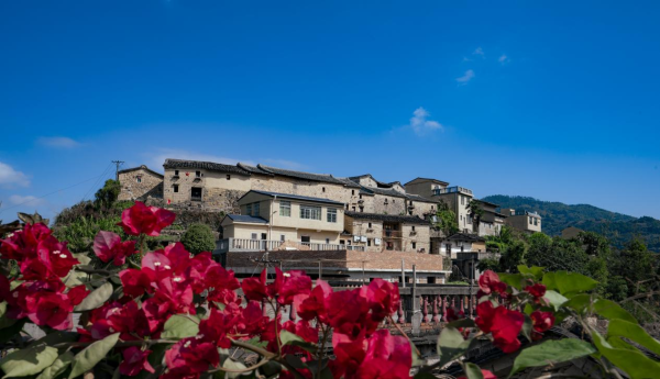 沿着山脊一路向上,来到南岩村内,抬头便是“安溪的布达拉宫”——月寨。月寨,始建于1520年前后,至今近500年历史,坐落在地势高高的山尖之上,错落别致确实犹如西藏布达拉宫。寨中两排房子相对排开,圆形的街头拖着细长的结尾,宛如古墨书香里的“月”字。寨子里生着棵有“观音弟弟”之称的本山母树,正闹腾腾地开着花,蜜蜂嗡嗡,蝴蝶翩迁。树旁的古厝是本地石头建造的,据书记介绍,这些建房的砖块可是村里的活化石,过去的枝叶纹理清晰如昨。时间在这里留下的脚印,被悉心珍藏起来,融在骨子里。