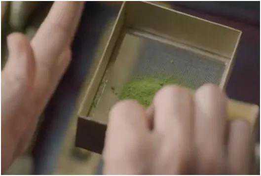 准备好点茶所需茶具和团茶之后,需要将团茶制成茶末。团茶在存储过程中难免受潮,为便于茶末形成,须将龙团凤饼取适量置入茶焙笼炙烤。且宋代饼茶属蒸青绿茶,苦涩味其实偏重,炙烤也是有助于提升口感。