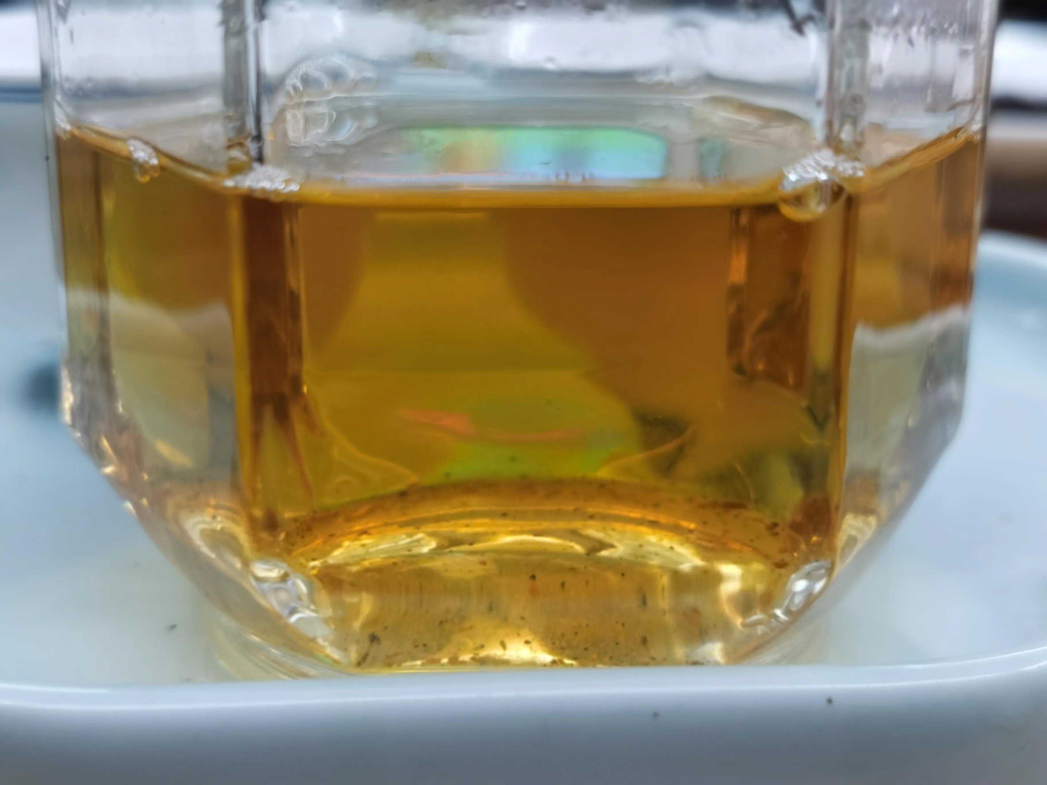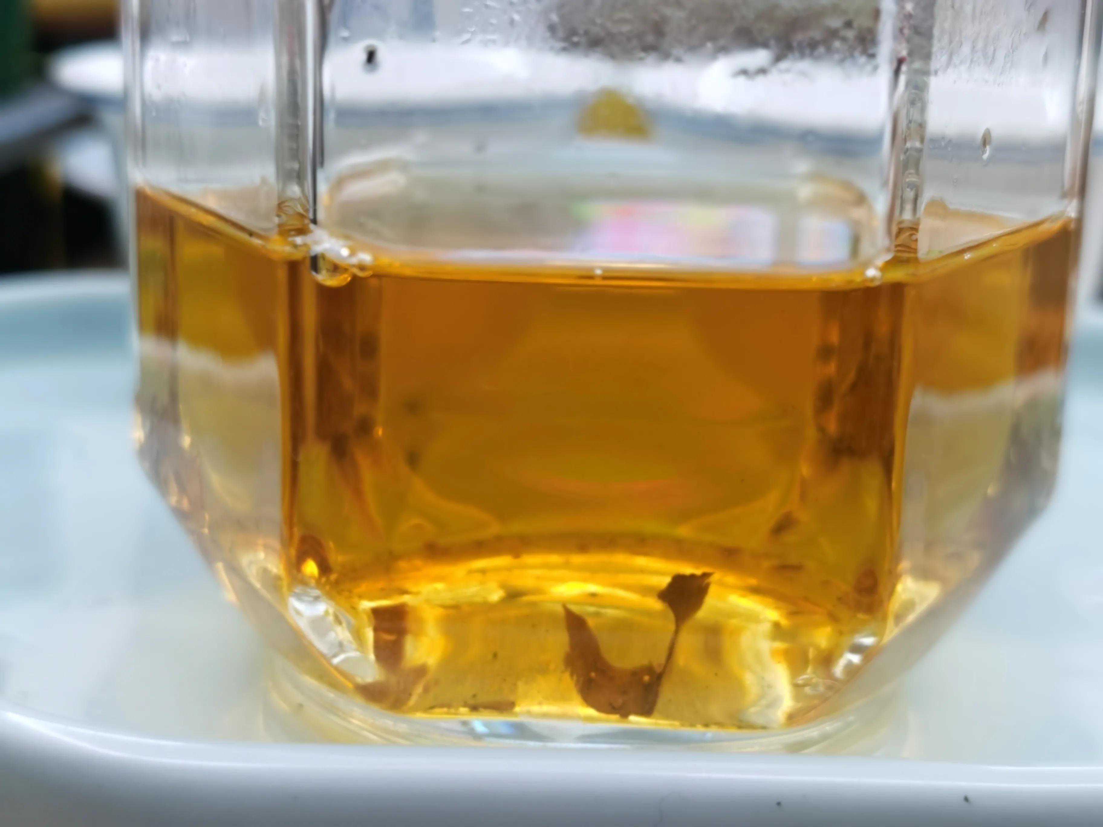 谈谈缺点,这款冰岛黄金条的生津强度很一般,苦底突兀,涩感也比较明显,这些与产地以及树龄有关。采用的非核心区小树的茶箐。难免苦涩度上稍过。同时协调性上中段欠佳。香气在延续和留存上不足。还有就是体感上比较欠缺。