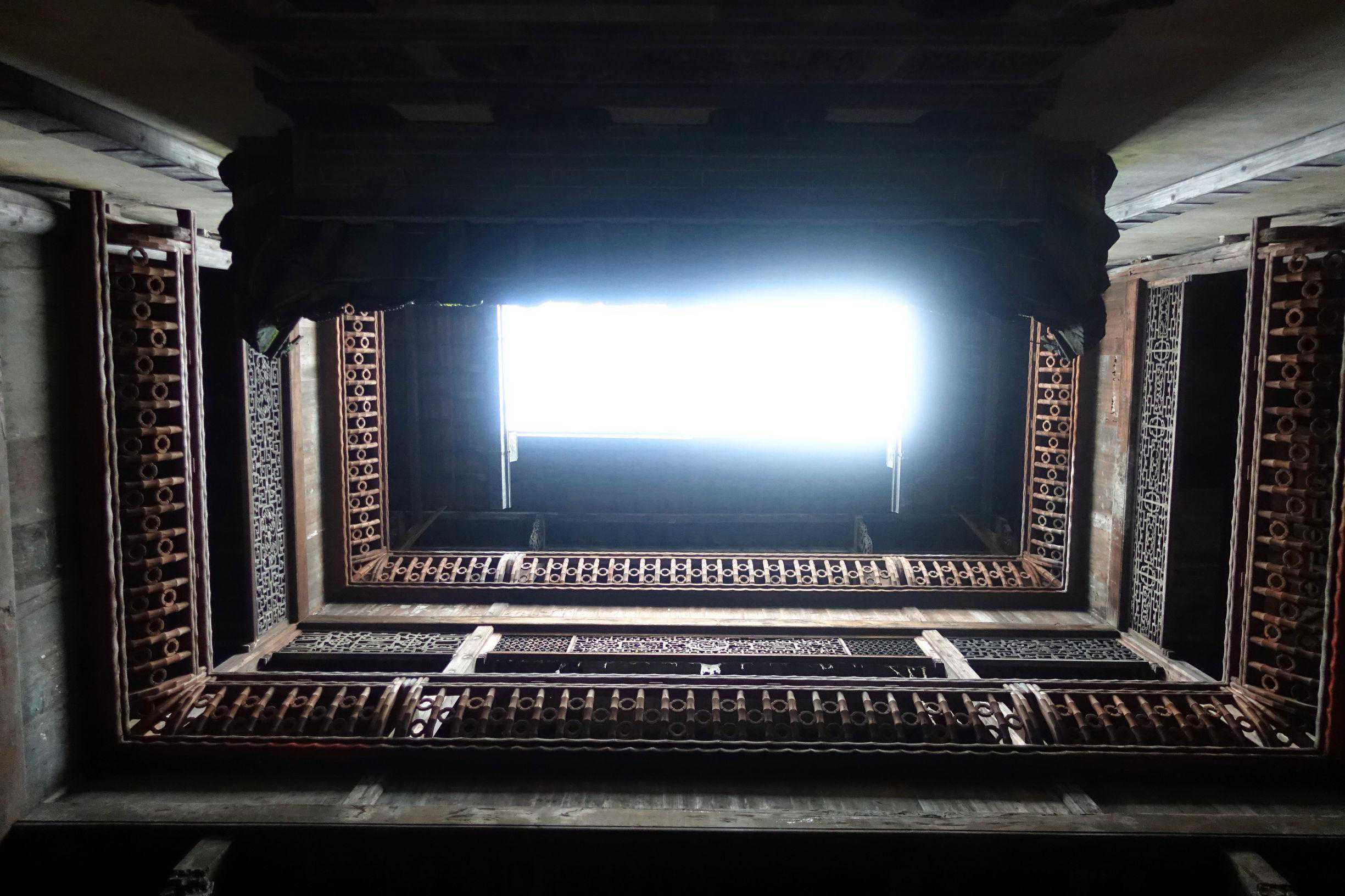 ▲一层潮湿,四层是阁楼,因此都不会住人。房子的设计是每层相通的,便于小姐活动,也体现了徽商对女儿的富养。未出嫁的小姐是不能接地气的,因此她不会到一层,她的世界只有这一线天,因此就有“头发长,见识短”的说法。