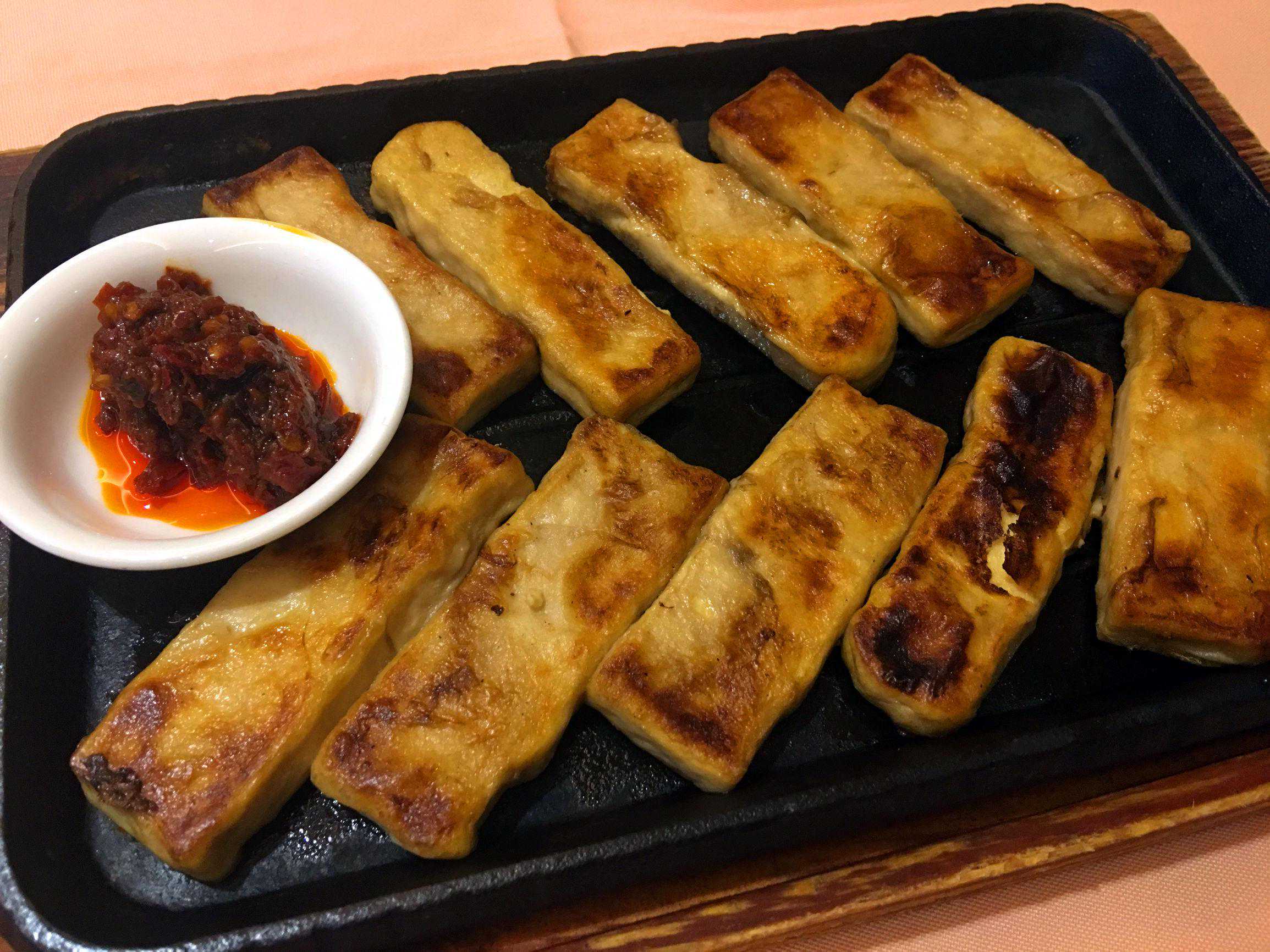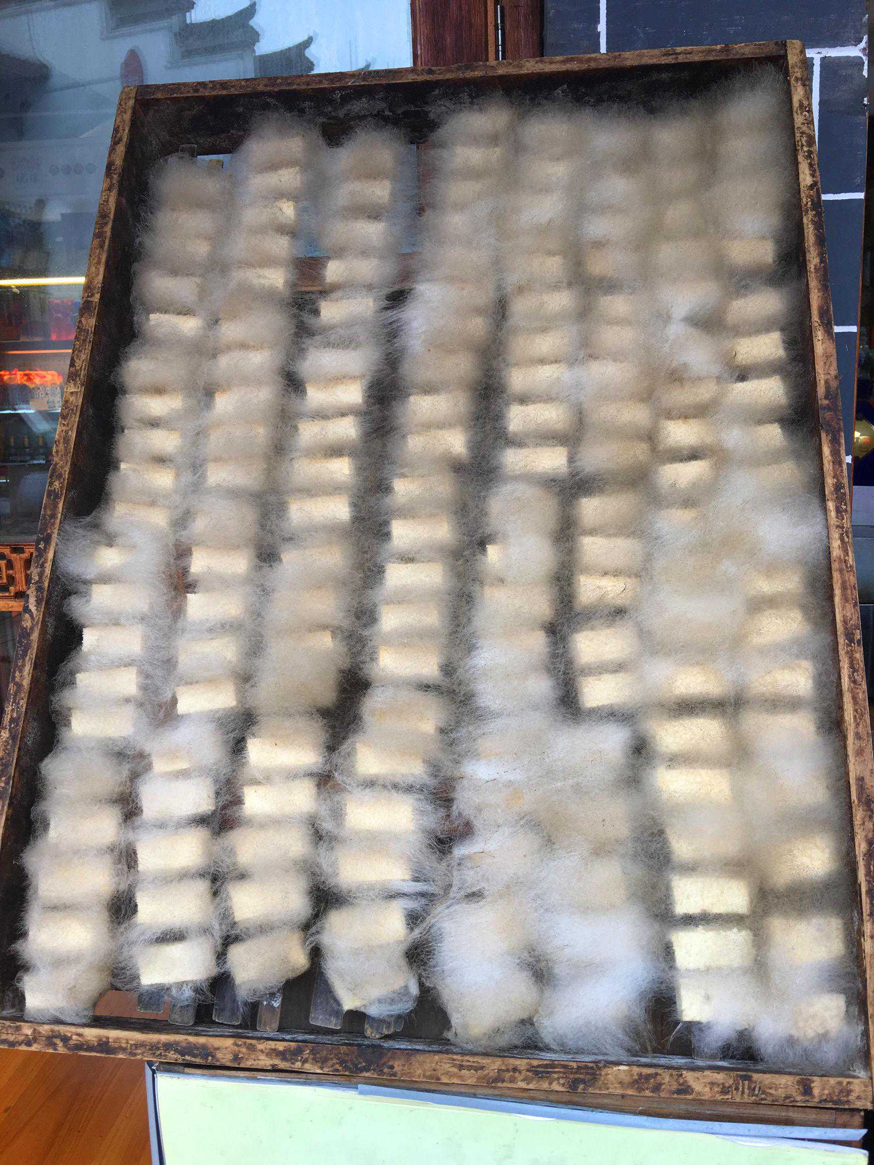 ◆毛豆腐:表面长有一寸长的白毛,其实是一种菌丝,经发酵霉制而成,也称“霉豆腐”。是《舌尖上的中国》推荐的徽派小吃,一般是红烧、油炸、火焙和清蒸。民间有种说法:“毛豆腐,吃了打嘴都不吐”来形容它的美味,就个人而言,我不太喜欢吃。在一些老街很多商户都打着《舌尖上的中国》的旗号售卖毛豆腐,建议选择正规老字号