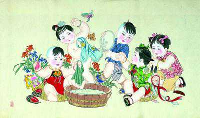 年画《五子爱清洁》张鸾