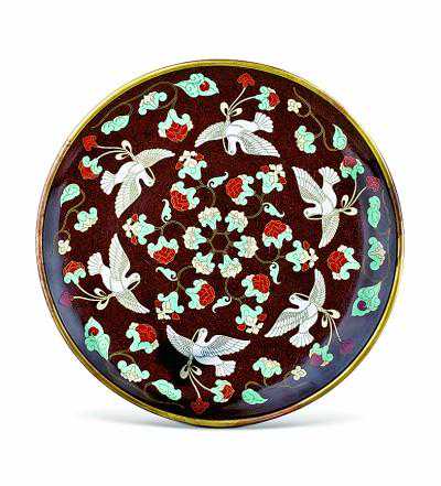 景泰蓝和平鸽纹盘常沙娜