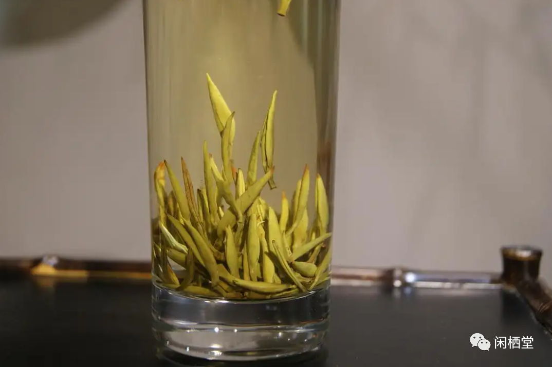 其外形芽毫完整,汤色杏黄清澈,滋味清淡、清甜爽口的品质特点。