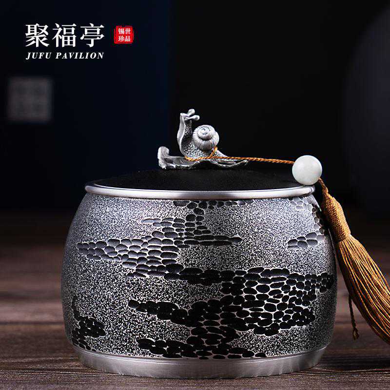 赏其“工”工,指锡器的工艺,锡器的工艺多由其纯度决定,97%及以下的锡器质地坚硬,适于机械加工,加工出来的锡器往往浑然一体,浮雕效果明显,但其密封性不是最好,因此茶叶罐一般都采用内外两层设计。99.9%的锡器质地较软,手工特点浓厚,一件作品多为几部分合成,能够表现出高级的雕刻和镂空工艺,高纯锡密封性很好,茶叶罐仅需使用一个外盖即可达到效果,你常常可以发现用力盖时会反弹回来,便是这个缘故。