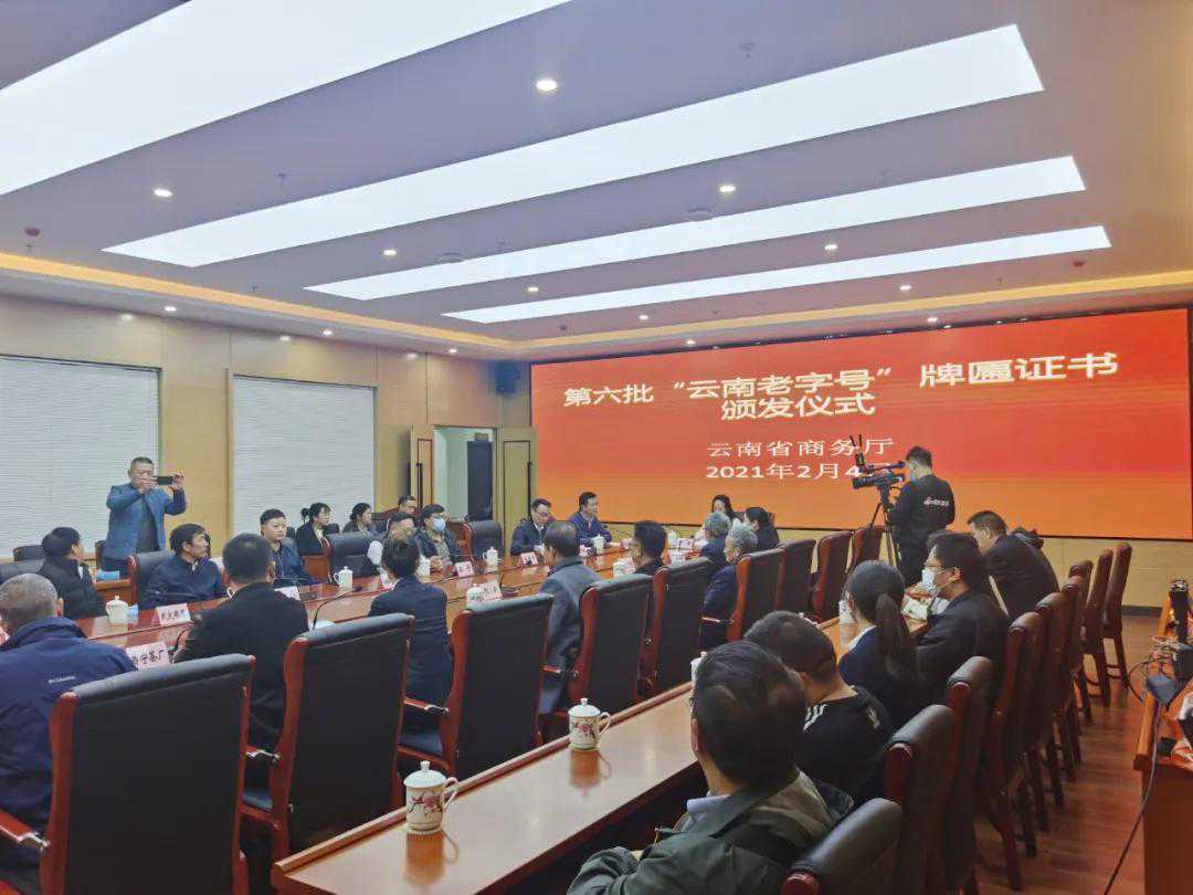 2月4日下午,为促进云南老字号融入新发展格局,赋能老字号企业以强大的无形资产,云南省商务在昆明召开第六批云南老字号牌匾证书颁发会议。六大茶山“俊昌号”荣获“云南老字号”称号。