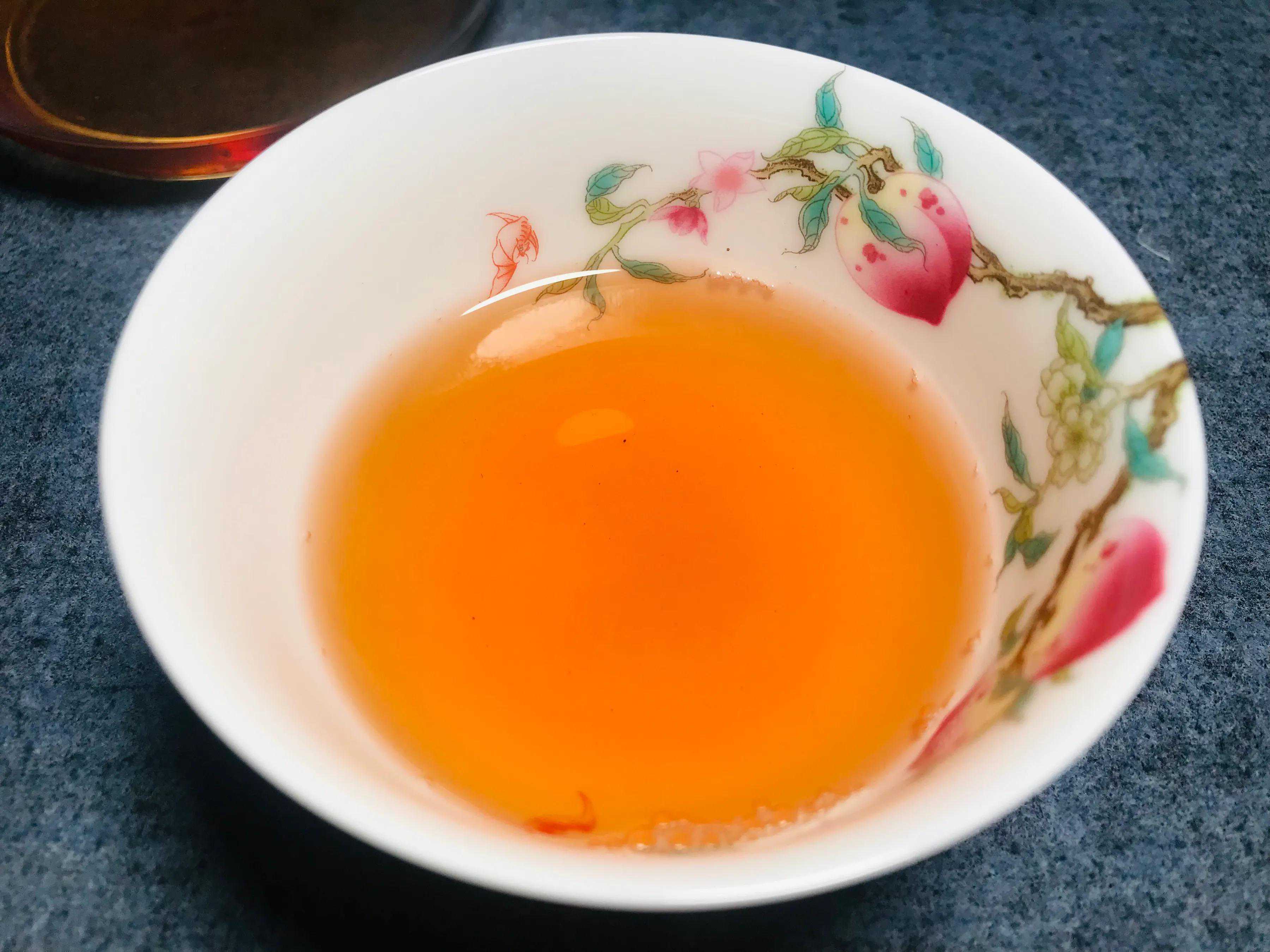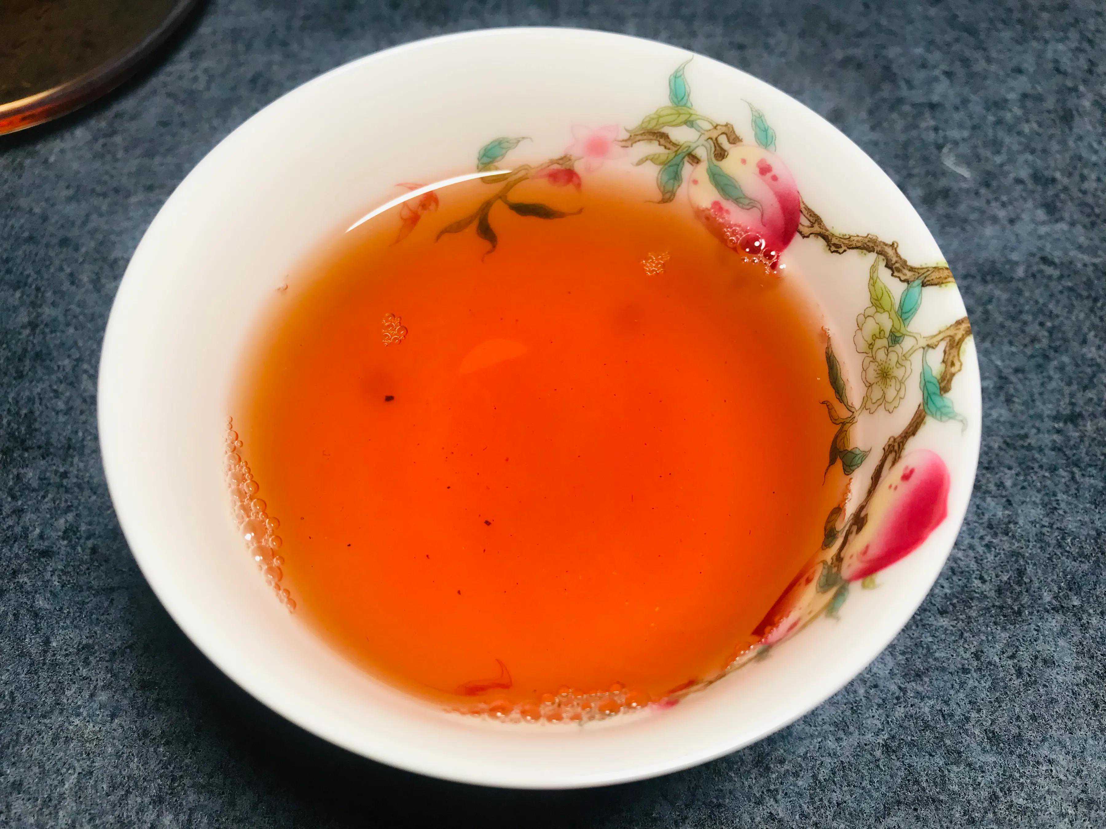 第1泡:8秒左右出汤。茶汤浓强度不错,汤感不够饱满,涩感尤其明显,水路略粗,显陈韵。