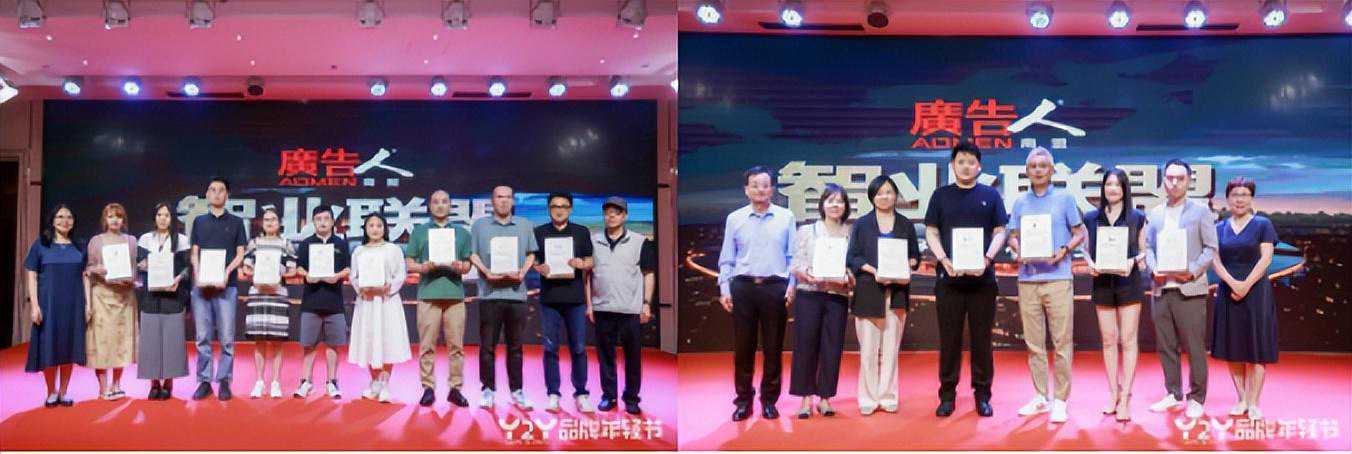 中国职工摄影家协会驻会副主席、中国广告协会报刊分会主任、广告人商盟联席主席梁勤俭、北京大学新媒体营销传播研究中心研究员中央民族大学新闻与传播学院硕导学院奖资深评委沈虹、暨南大学新闻与传播学院广告系教授、博导,暨南大学传播与国家治理研究院院长杨先顺、北京广播电视台党组成员、副总编辑马宏共同为智业联盟代表授牌。