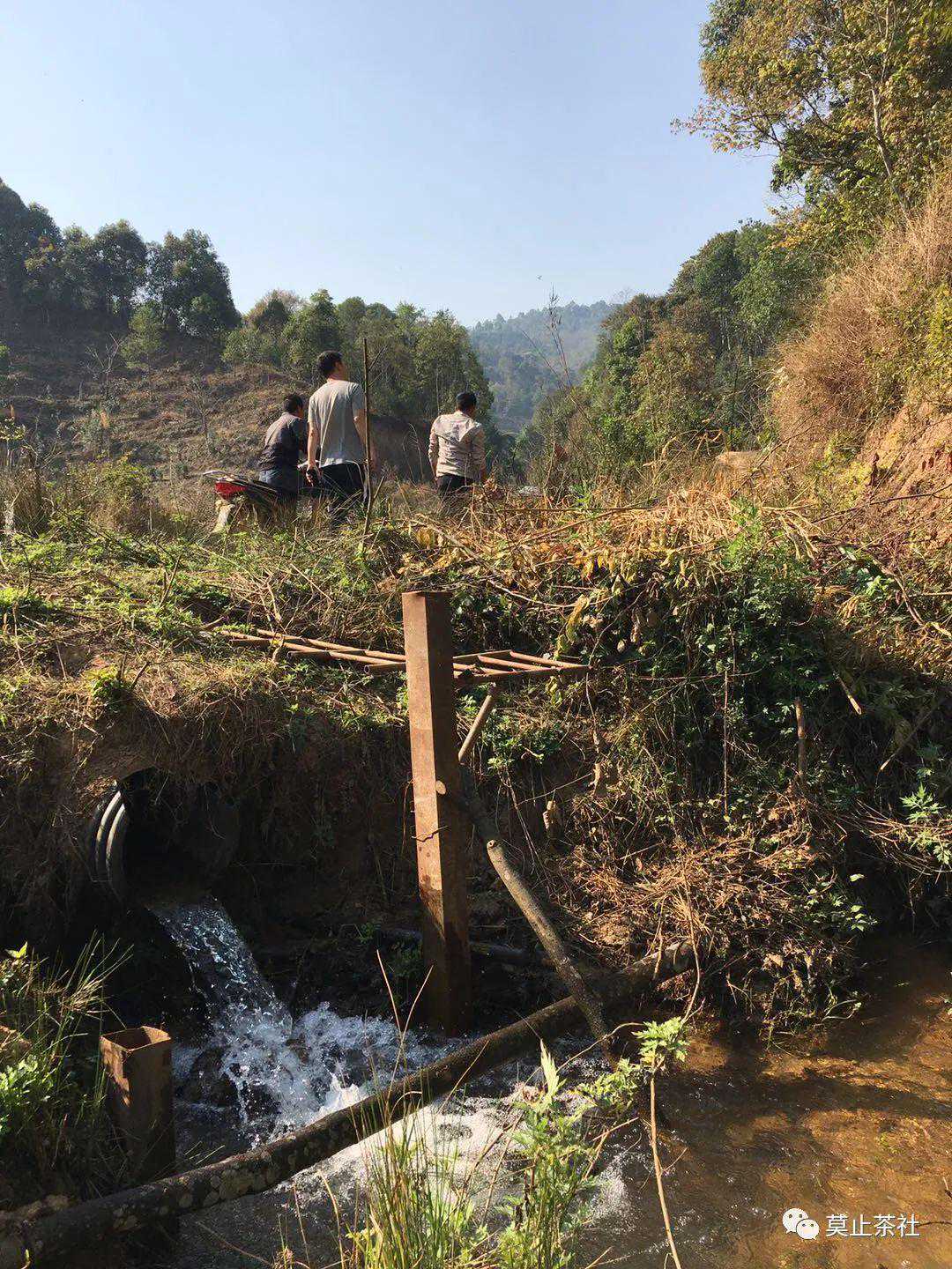 去看茶地吧!说走便走,发动皮卡,经过20分钟左右车程到达有茅草屋的此处,下车步行!