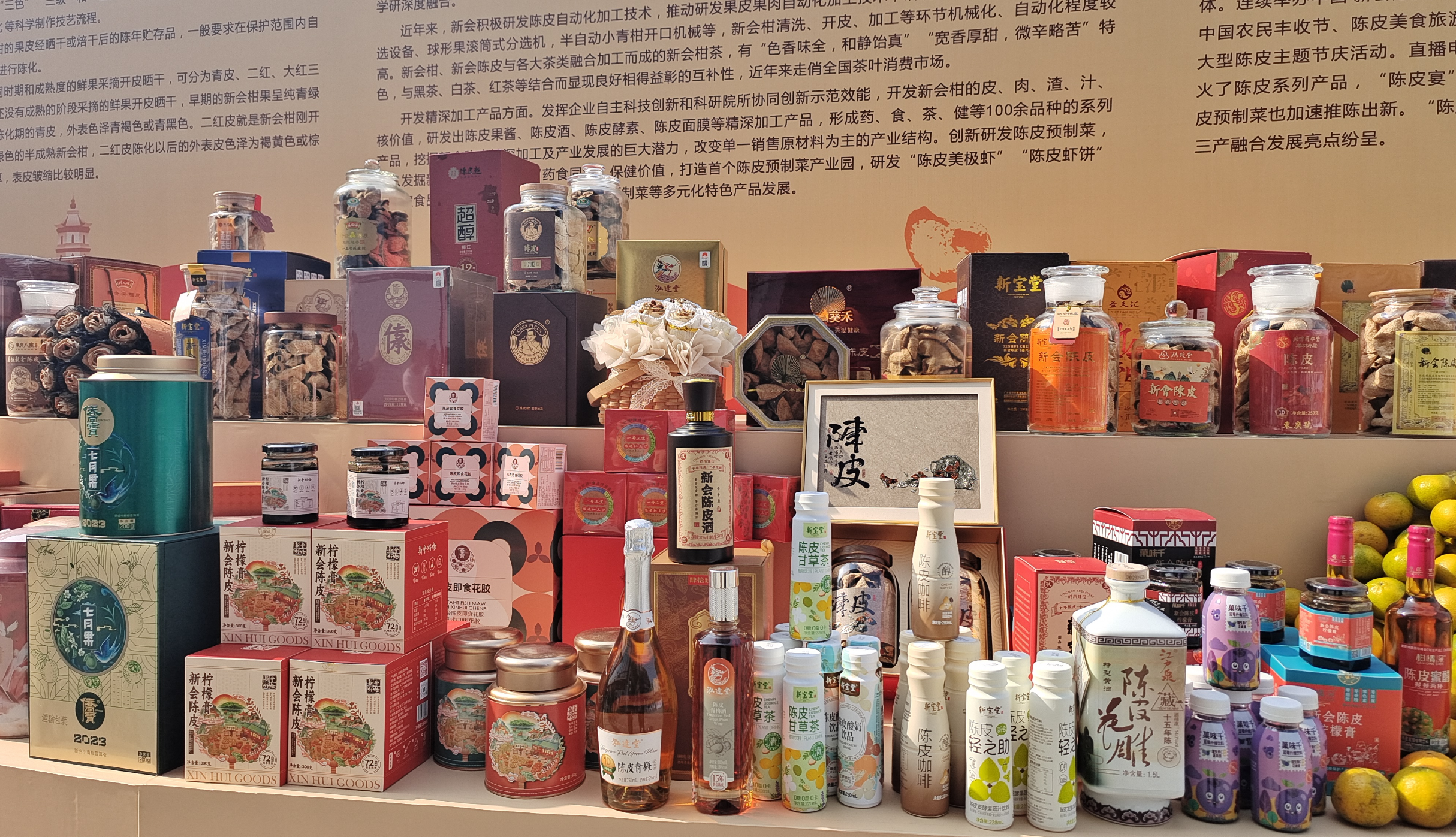 第六届新会陈皮文化节现场展出陈皮相关的衍生产品。(摄影:陈冰青)