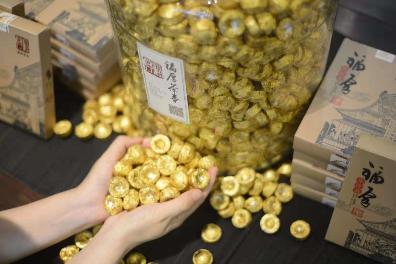 体型讨巧,资历够深,还有“福”字镶嵌于身,金灿灿的一粒粒小沱茶,蕴藏着深厚的内涵。