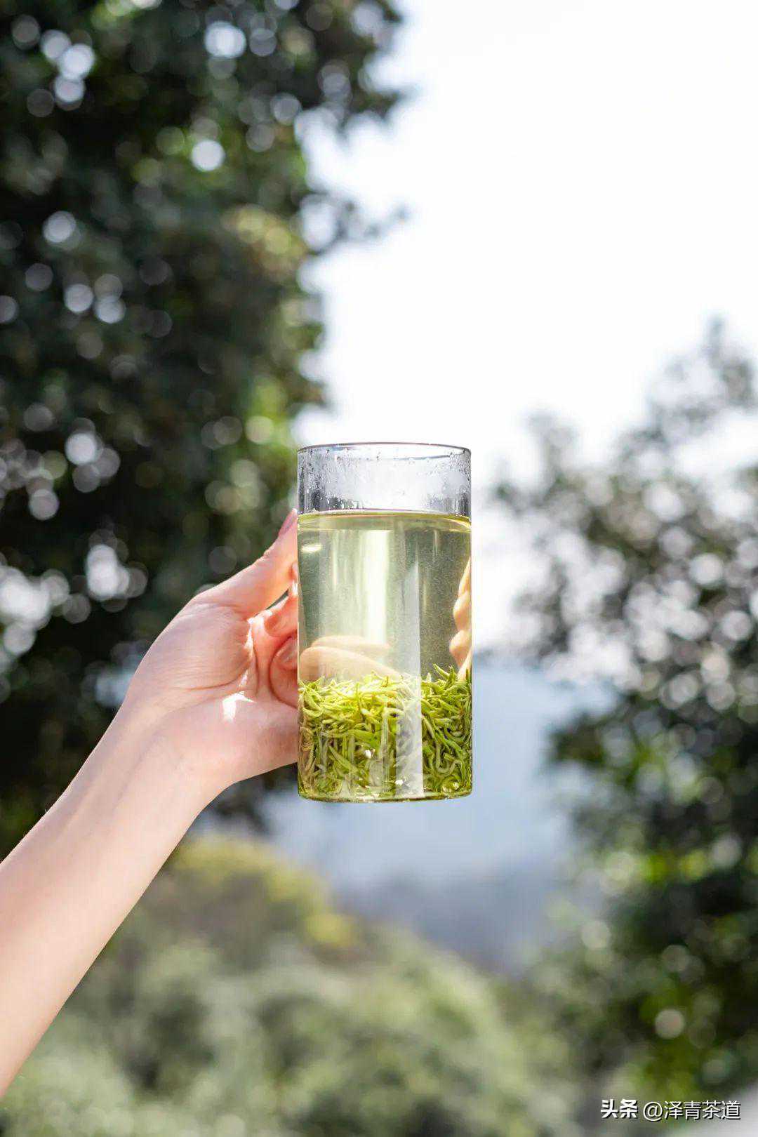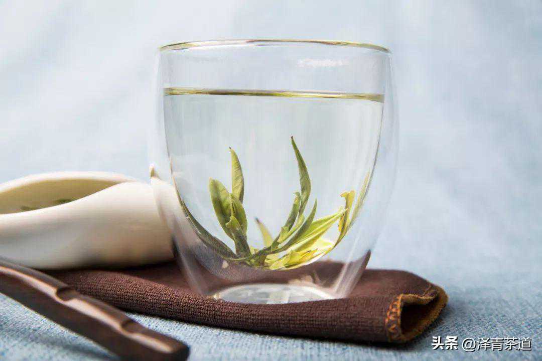 ⑤品茶。大约冲泡数分钟后,待茶芽大部分立于杯底时即可欣赏、闻香、品饮。