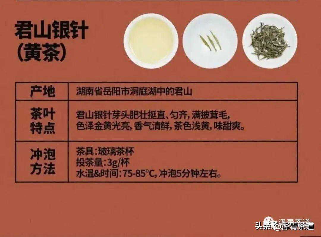 君山银针是中国著名黄茶之一,分为“尖茶”、“茸茶”两种。产于湖南岳阳洞庭湖中的君山,形细如针,故名君山银针。轻微发酵,颜色金黄光亮;芽头肥壮挺直,匀齐,满披茸毛,香气清鲜,茶色浅黄,味甜爽。