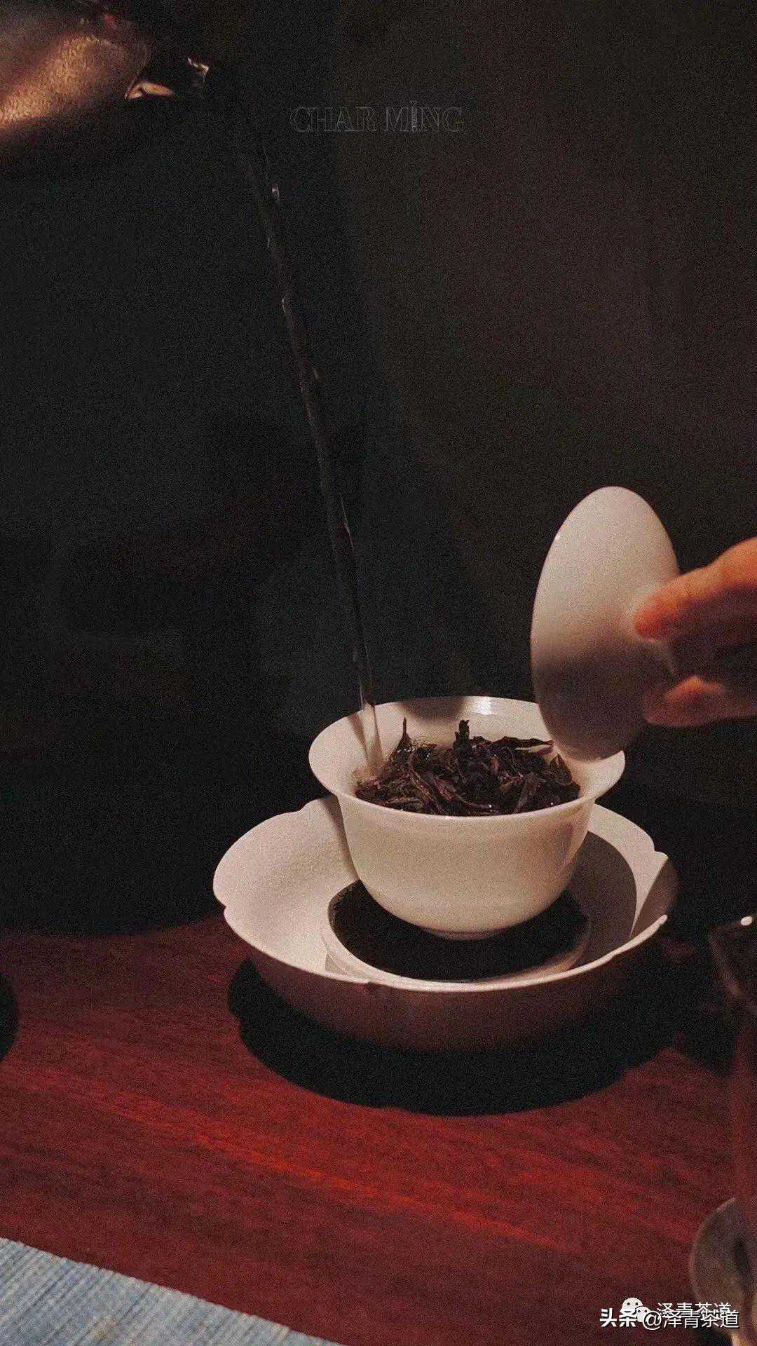 ④水温。水温的掌握对茶性的展现有着重要的作用。高温有利于发散香味,有利于茶味的快速浸出。但高温也容易冲出苦涩味,容易烫伤一部分高档茶。所以水温的高低要因茶而异。例如,用料较粗的饼砖茶、紧茶和陈茶等适宜沸水冲泡;用料较嫩的高档芽茶、高档青饼适宜适当降温冲泡,避免高温将细嫩茶烫熟成为“菜茶”。在冲泡部分高档新青茶时,除直接降温外,还可通过不加壶盖或沸水高冲来降低水温,避免因茶叶烫熟而产生“水闷气”。