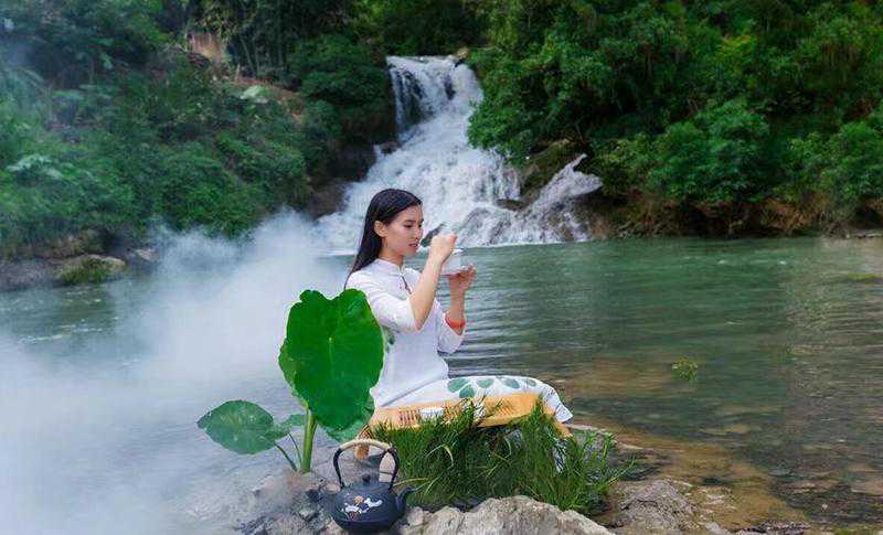 岑开秀在展示茶艺