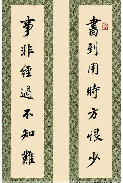 5、自勉联:自我勉励之用。如:有关家国书常读;无益身心事莫为。